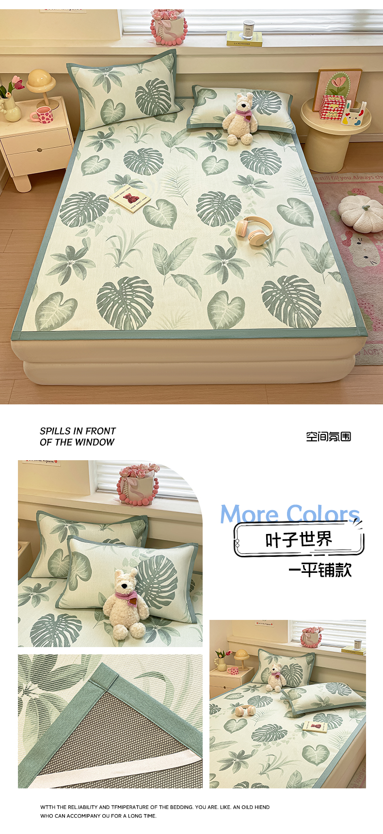 逸尚阁 2025春夏新款数码印花冰藤席空调席三件套 予花之美-平铺款