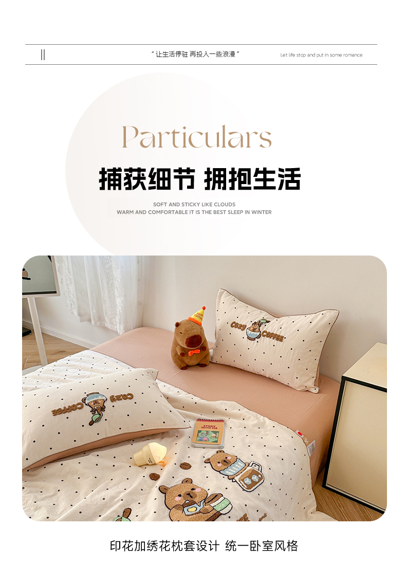(总)眠屿家纺 2025新款加厚牛奶绒毛巾绣四件套,乐趣,面包狗,玩偶,玩泡泡