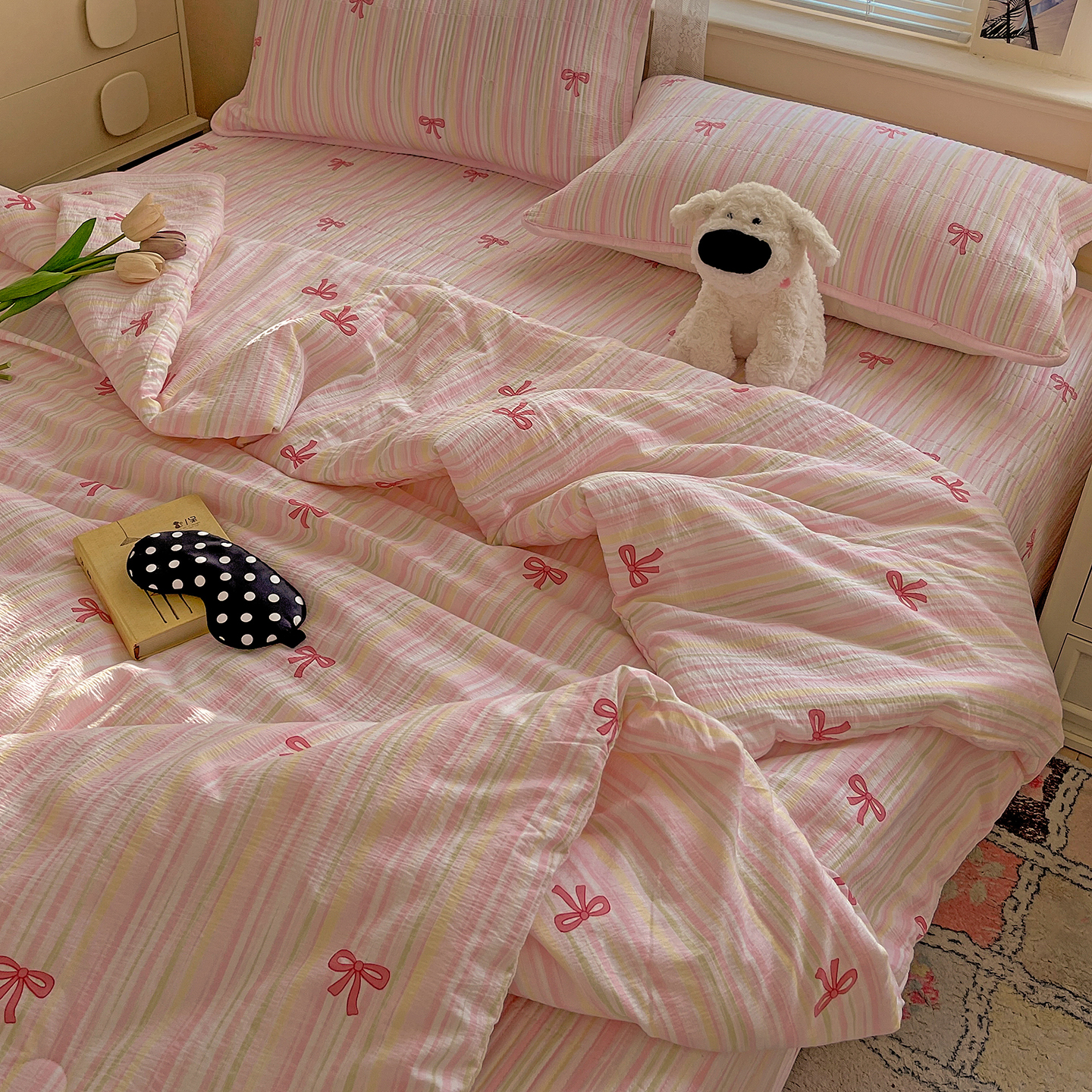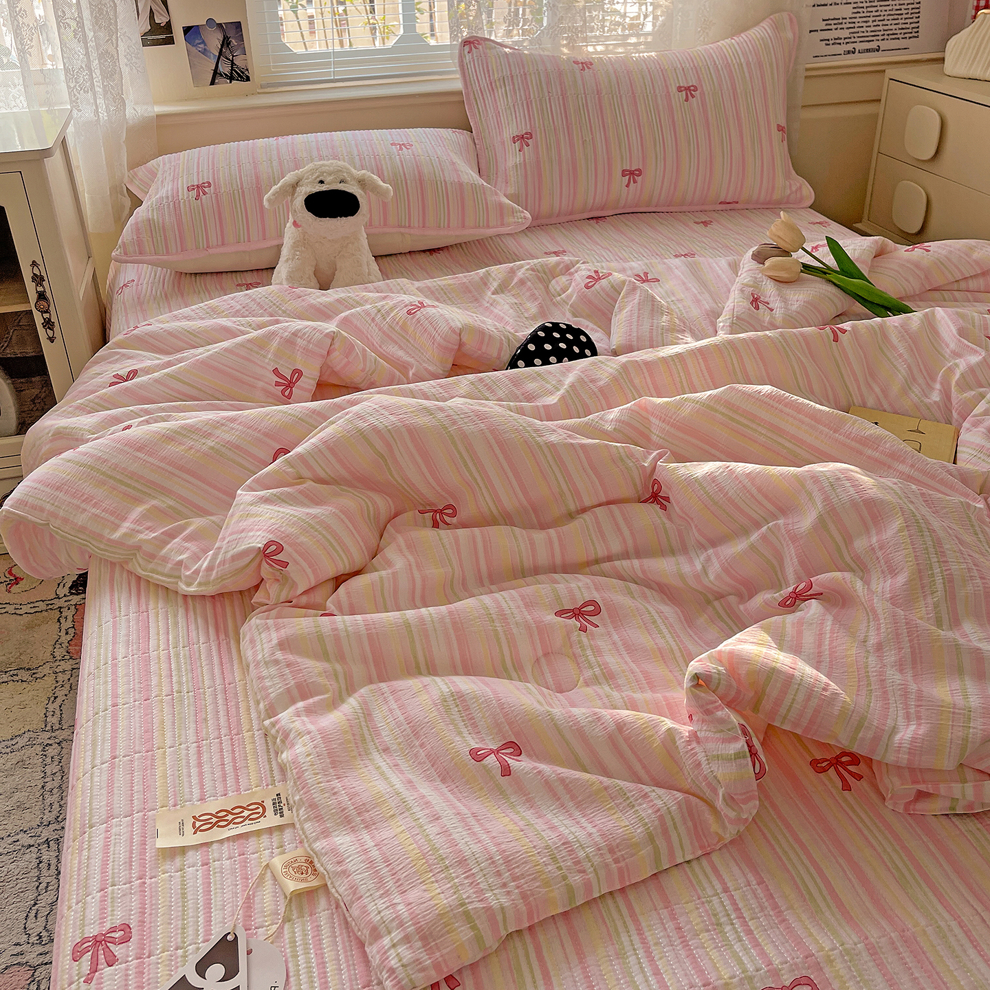 当前位置: 91家纺网 > 商品网购 > 床品套件 > 四件套 > 夏被四件套 > 繁花家居 2025新款超爆款床盖款夏被夏凉被空调被四件套 床盖款-甜心物语