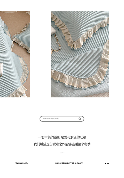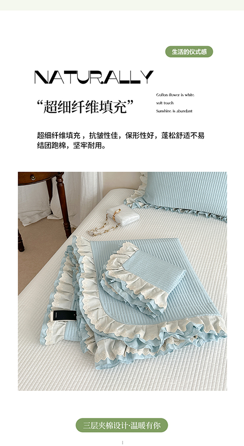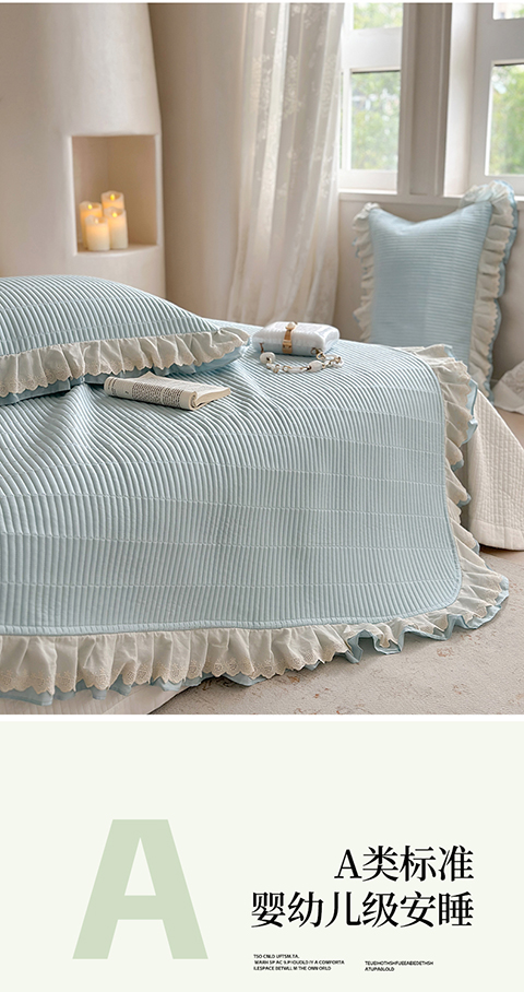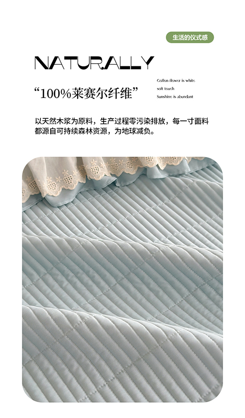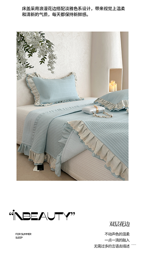 商品名称:琳可家居 2025新款轻法系列双层花边100%莱赛尔纤维床盖三件套可搭配同款被套(提供买家秀) 晴空蓝
