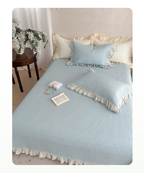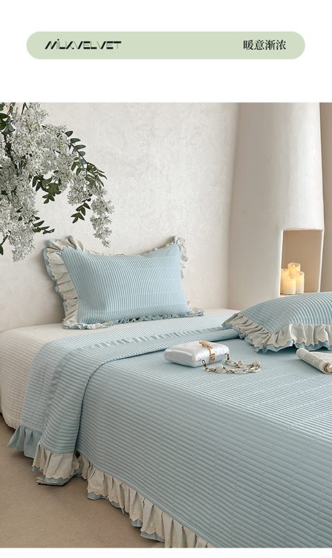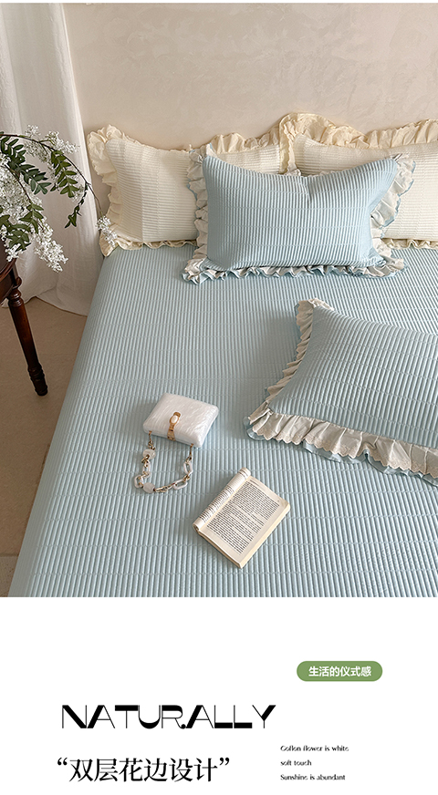 2022新款40S纯棉水洗棉韩版全棉荷叶边夹棉绗缝床盖三件套,海盐蓝,静谧灰,抹茶绿,奶油黄,千黛紫,浅豆沙,悠悠粉,云朵白,马卡桔,青草绿