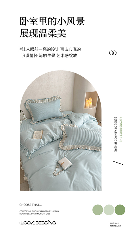 (总)笔墨家居 奶油系公主风撞色40支纯棉水洗棉四件套实拍,小苍兰,莫兰迪,青烟蓝,秋香桔,云朵白