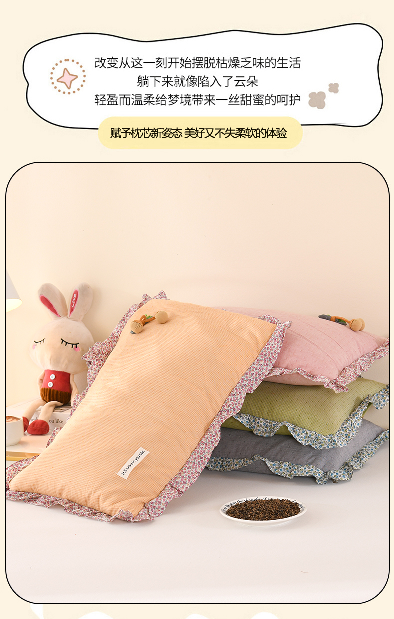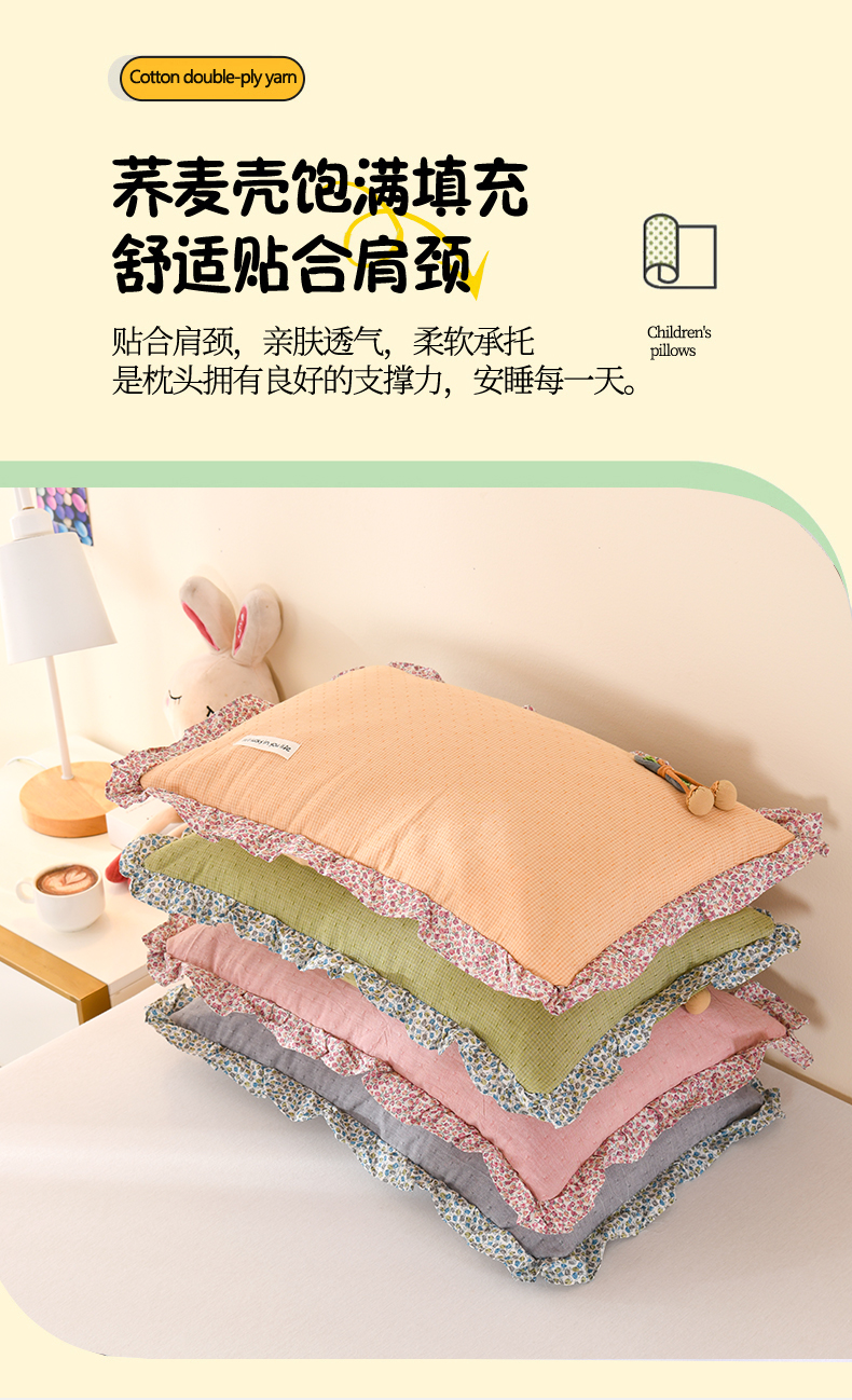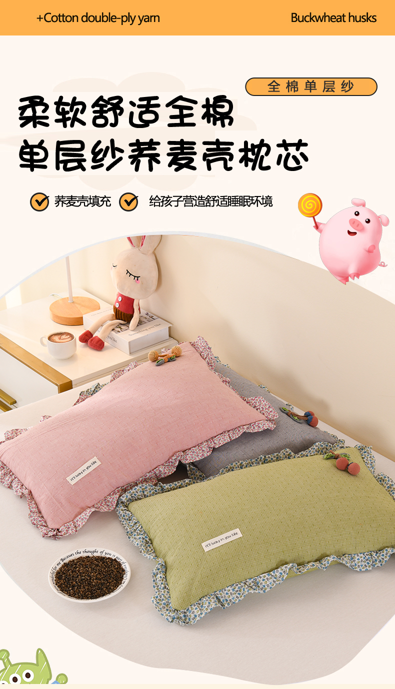 商品名称:金牛枕芯 2025春夏新款贴布绣樱桃荞麦枕全棉水洗棉小提花儿童学生枕头枕芯 组合图仅供展示