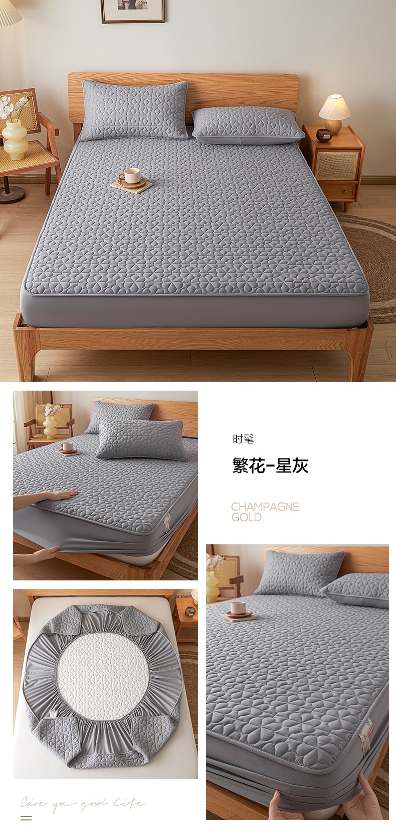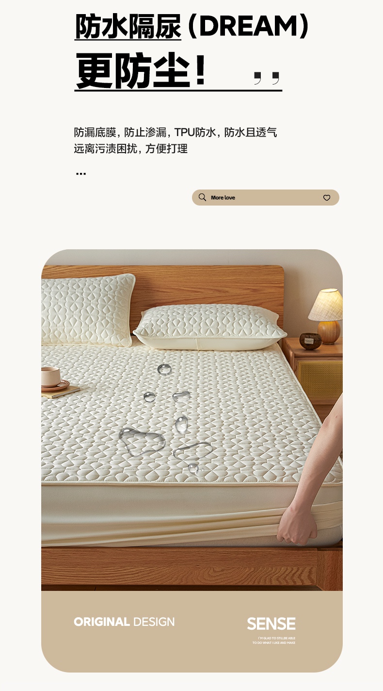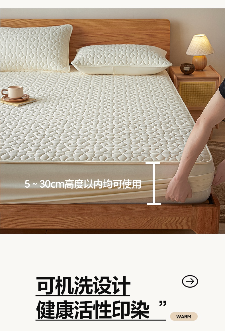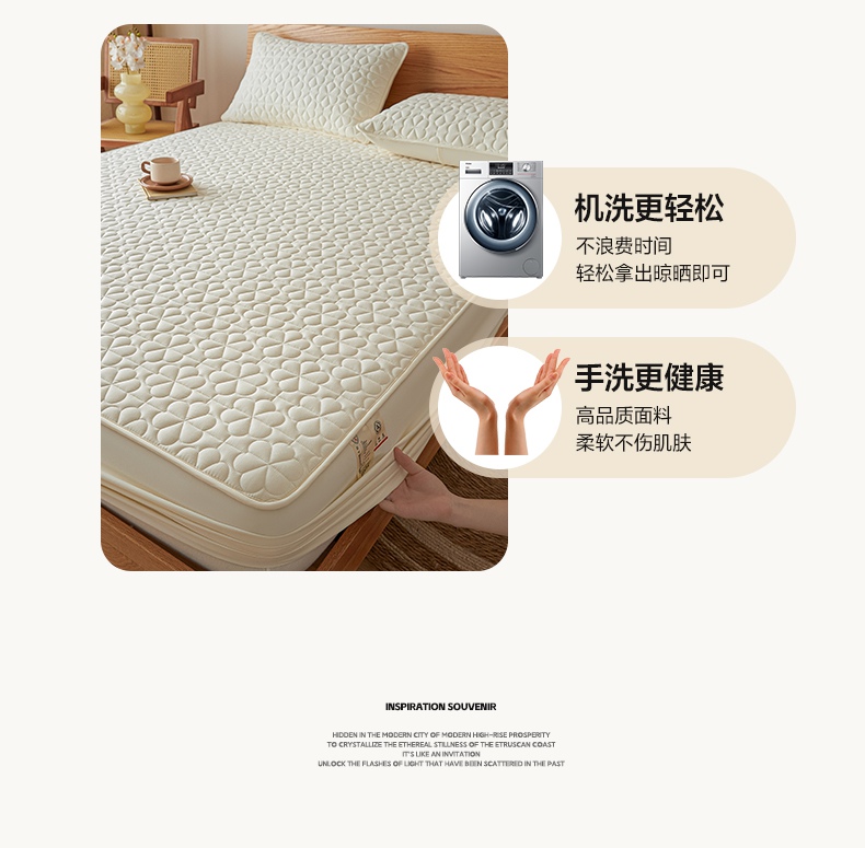 • 91家纺网 家纺一手货源 找家纺 芬晴家纺 2025新款A类母婴级大豆防水夹棉床笠系列-约定-心动-繁花 繁花-米白