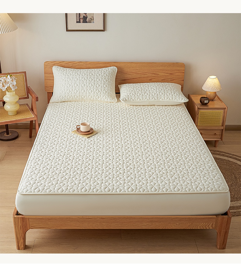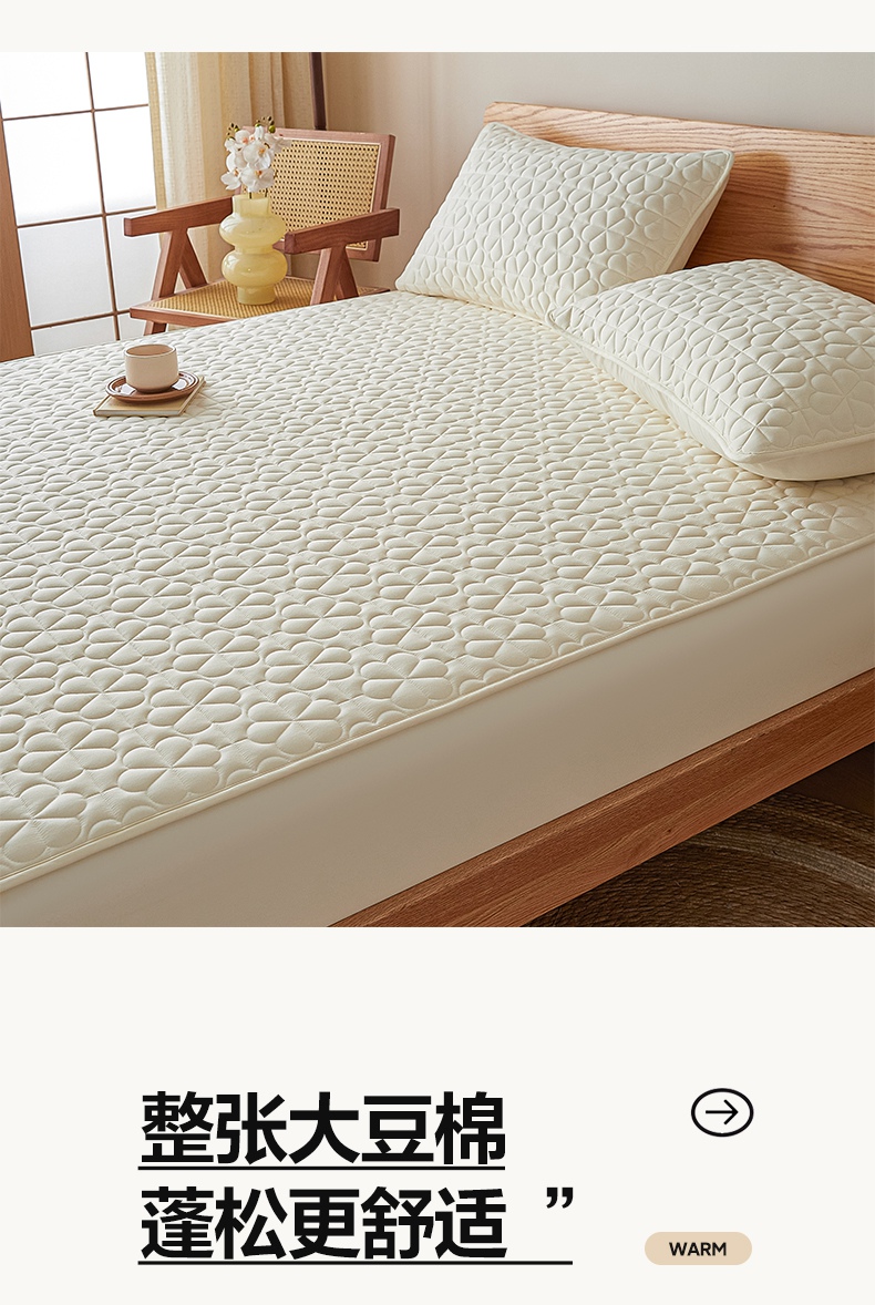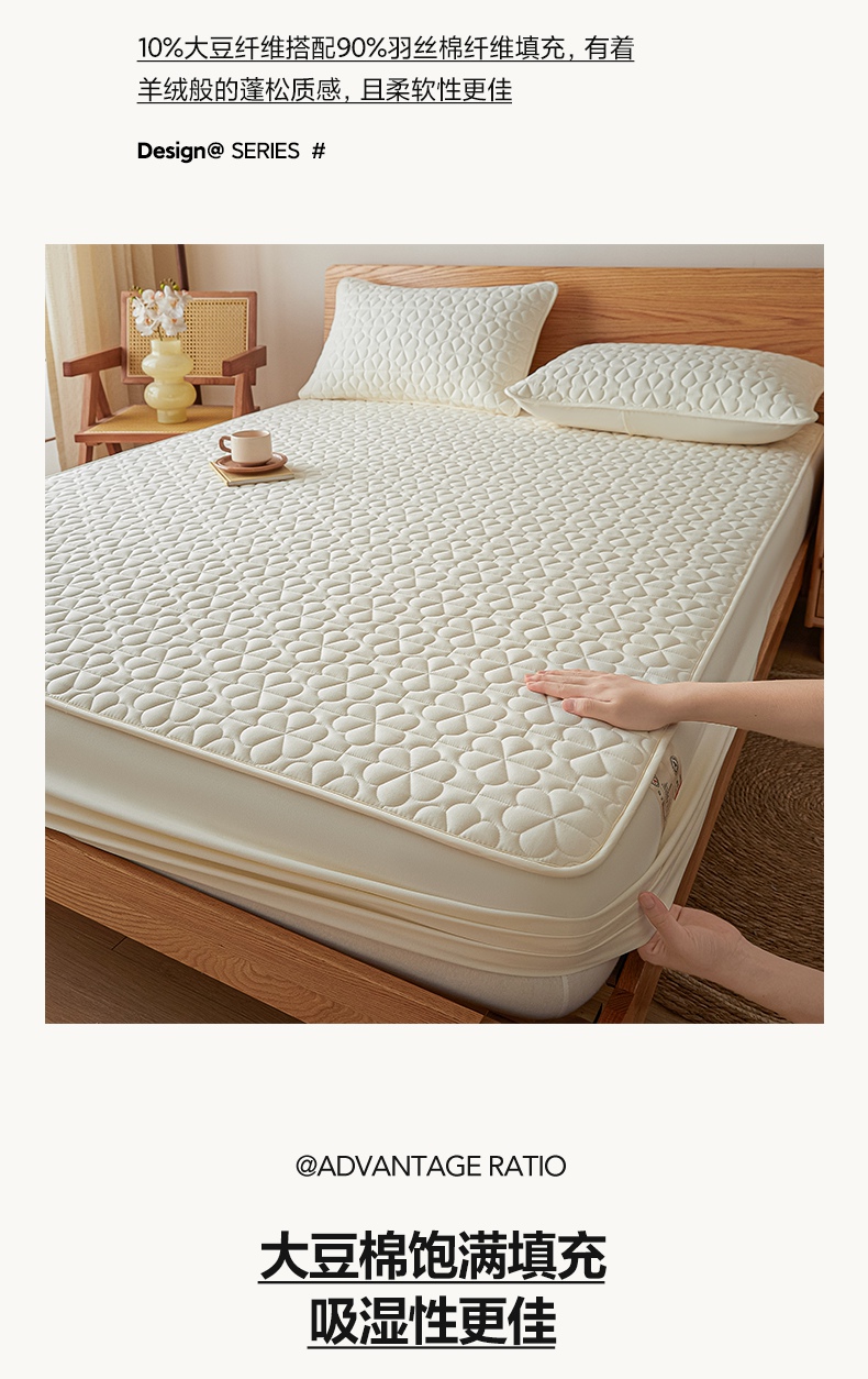 芬晴家纺 2025新款A类母婴级大豆防水夹棉床笠系列-约定-心动-繁花 繁花-米白