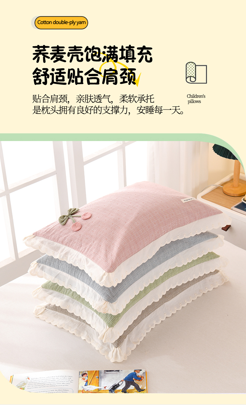 当前位置: 91家纺网 > 商品网购 > 枕头/枕芯/保健枕/颈椎枕 > 梦莱家纺 2025新款小樱桃枕头全棉水洗棉小提花枕芯花边可拆卸学生儿童枕头 樱桃枕-粉色 35x55cm/只-甜荞麦