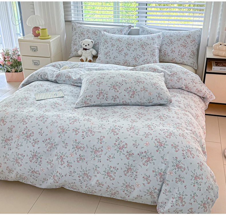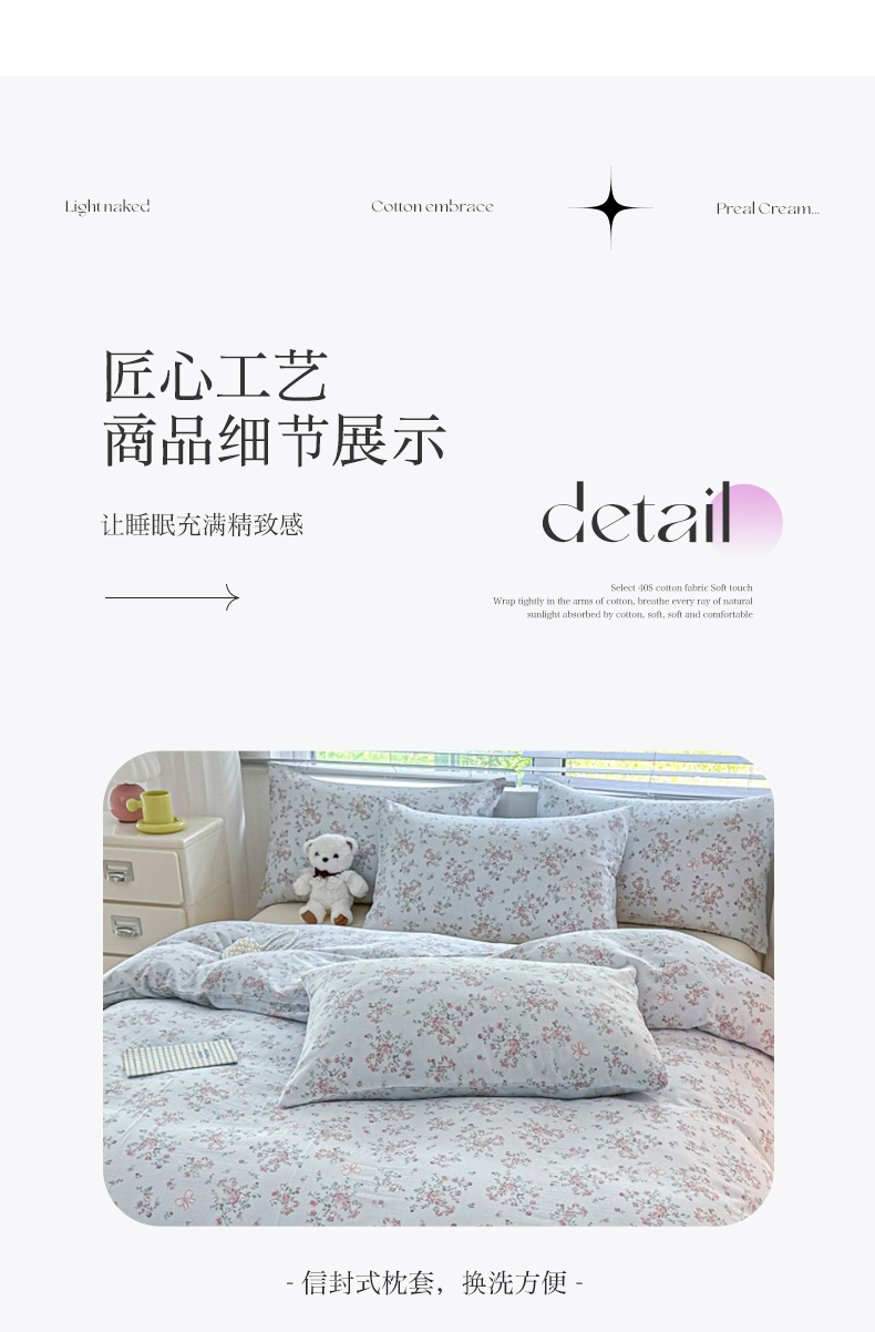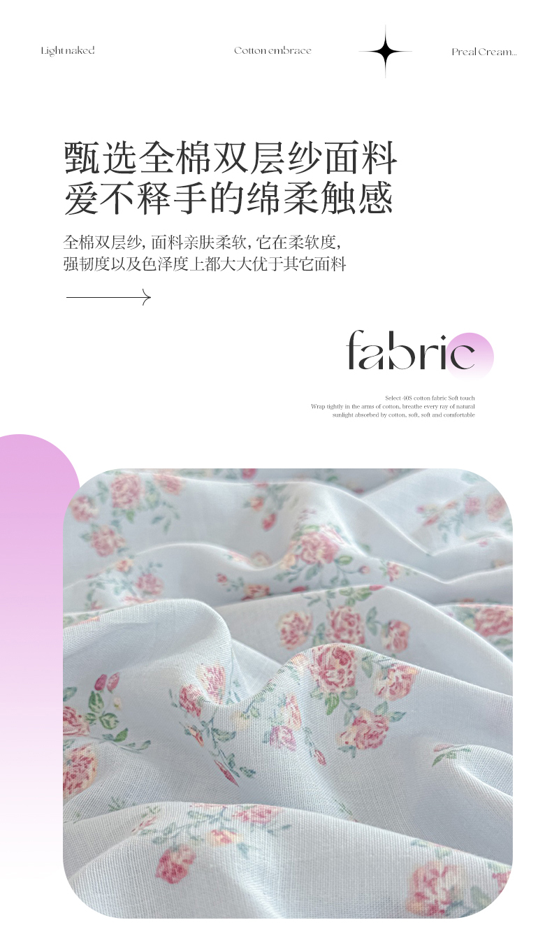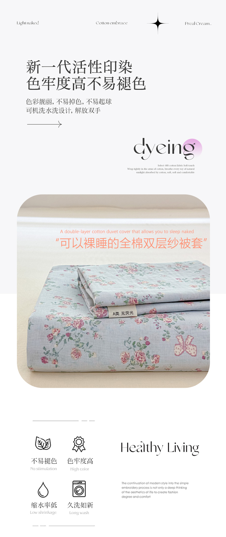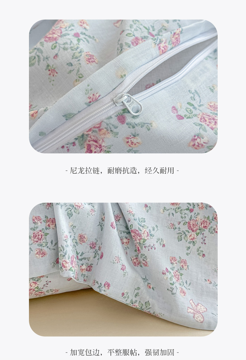 • 91家纺网 家纺一手货源 找家纺 芙绣家纺 2025新款A类全棉双层纱小清新印花单被套学生单被套单枕套 蔷薇梦境
