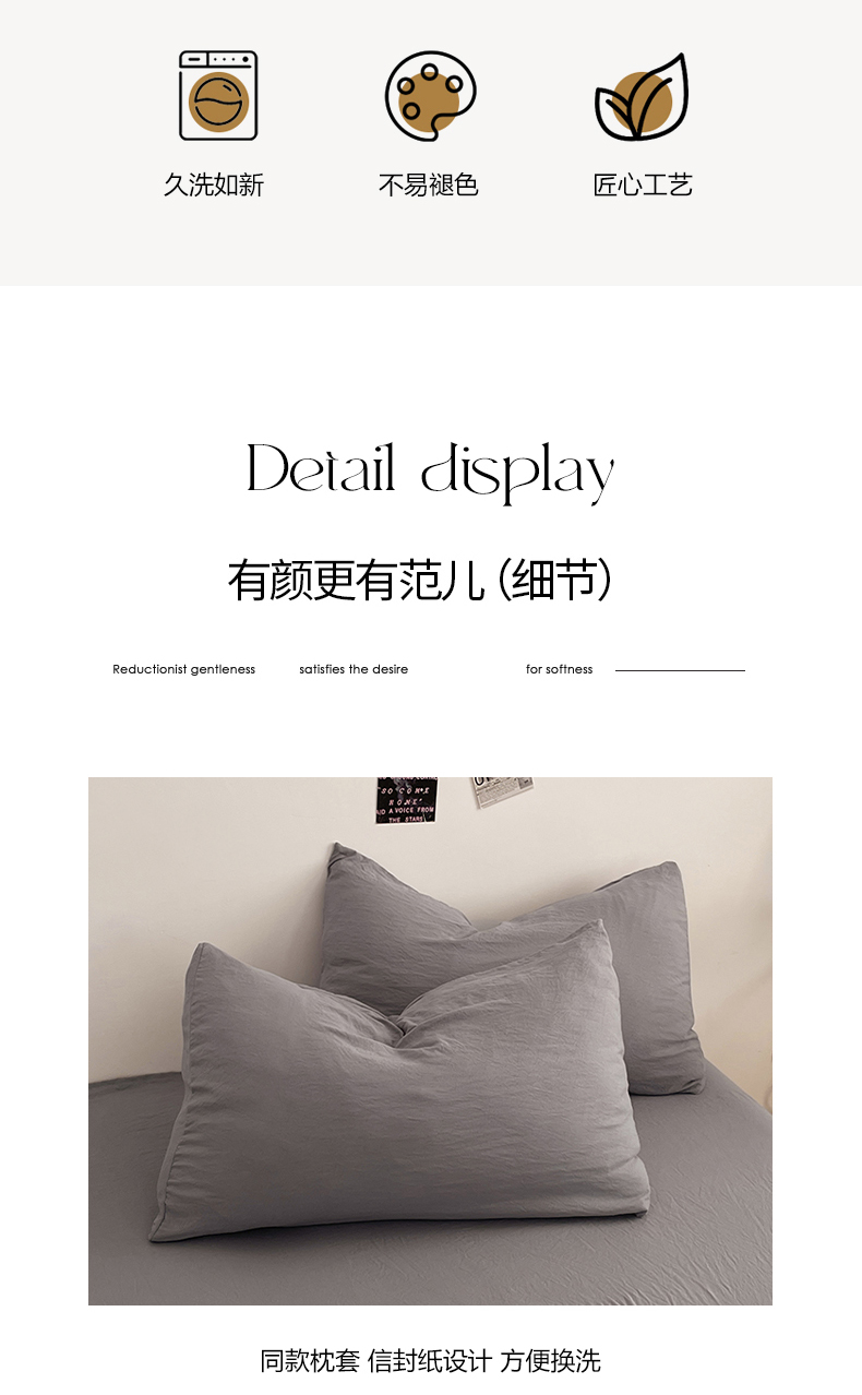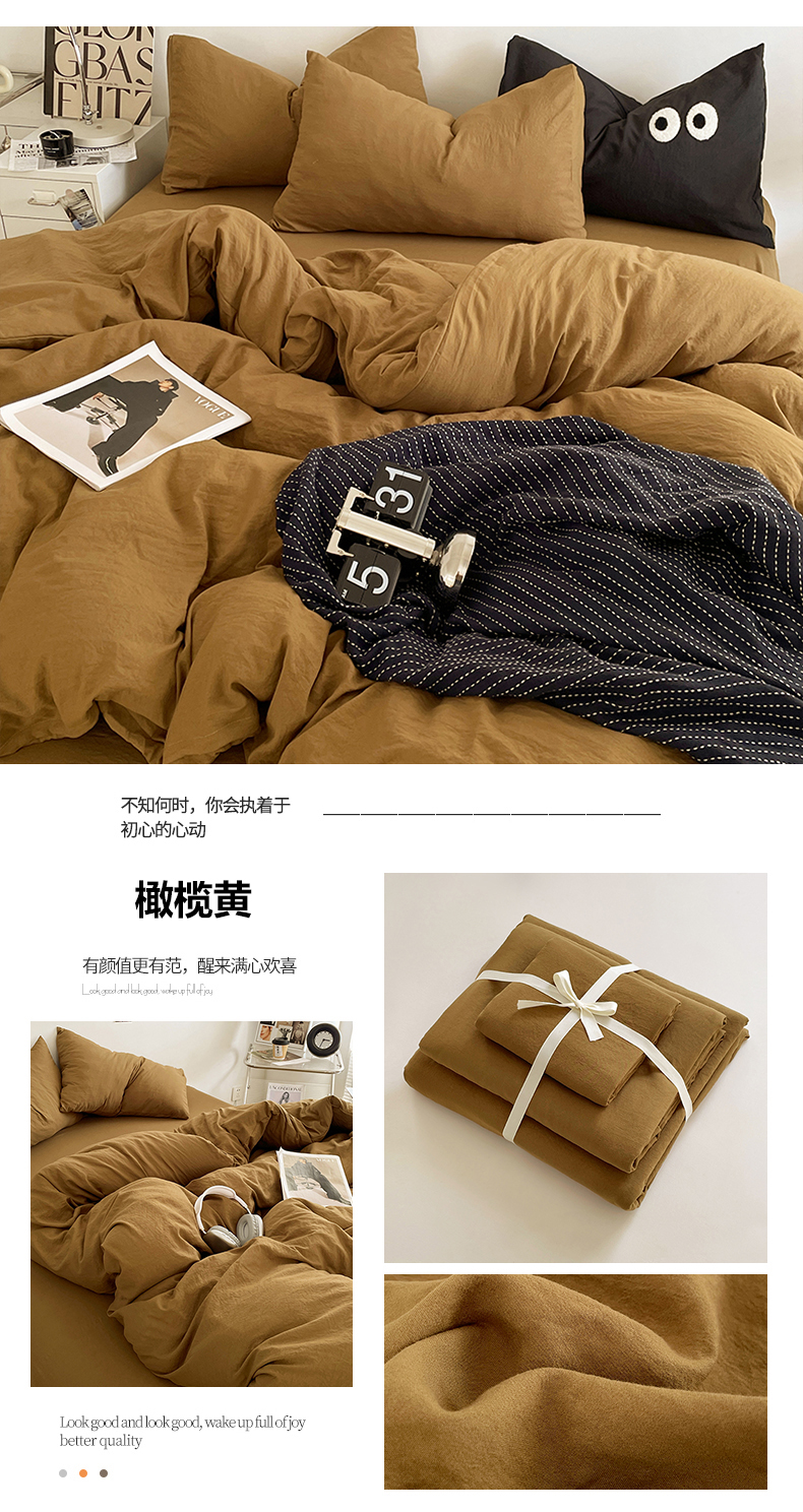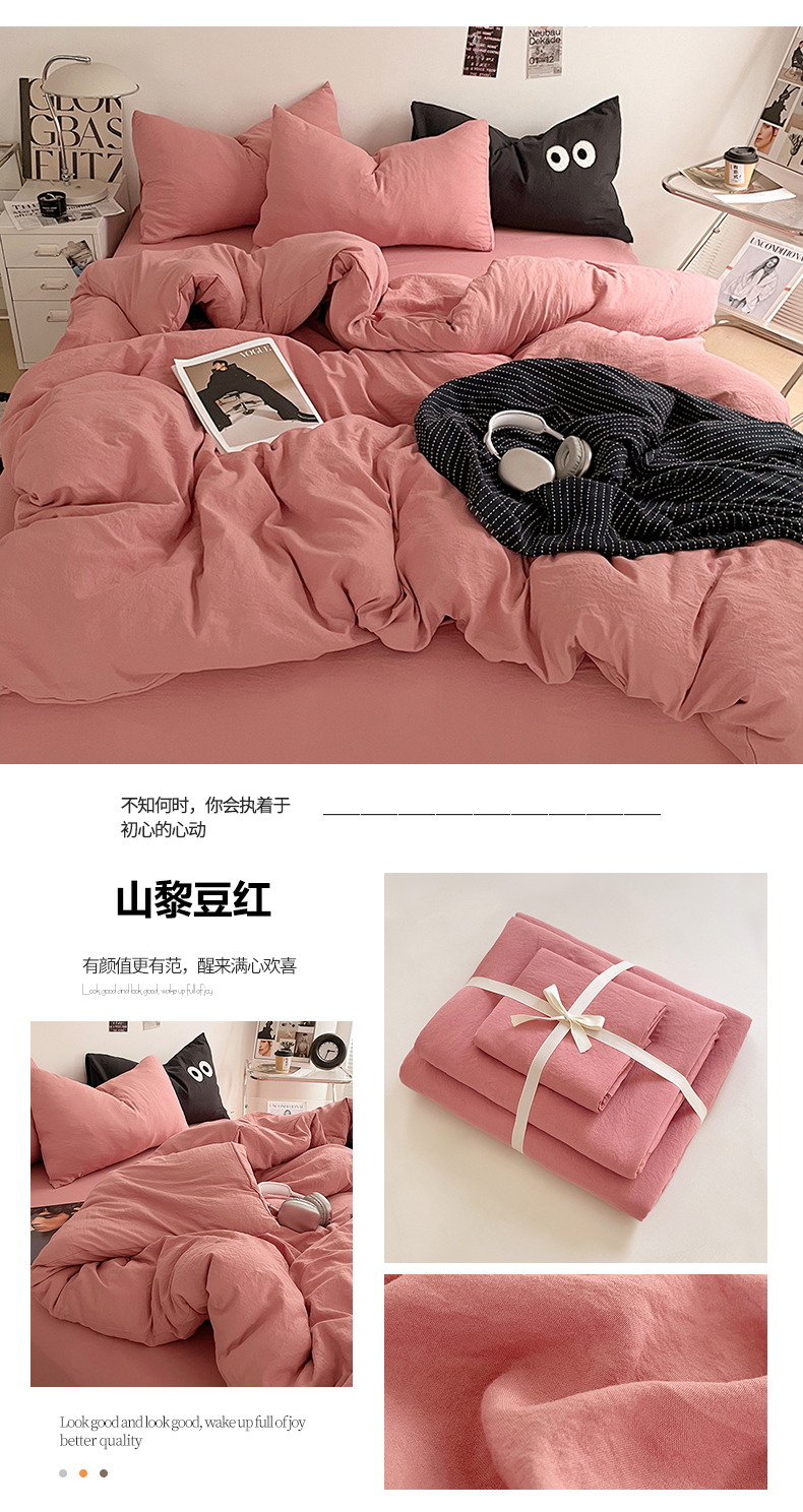 当前位置: 91家纺网 > 商品网购 > 床品套件 > 四件套 > 普通磨毛四件套 > 优尚佳生活馆 2025新款ins风超柔褶皱亲肤磨毛水洗棉四件套纯色系列(风格一) 芋泥紫