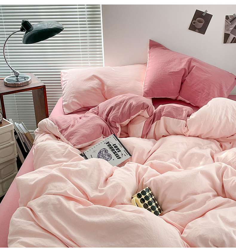 当前位置: 91家纺网 > 商品网购 > 床品套件 > 四件套 > 普通磨毛四件套 > 优尚佳生活馆 2025新款ins风超柔褶皱亲肤磨毛水洗棉四件套双拼系列(风格二) 香芋粉