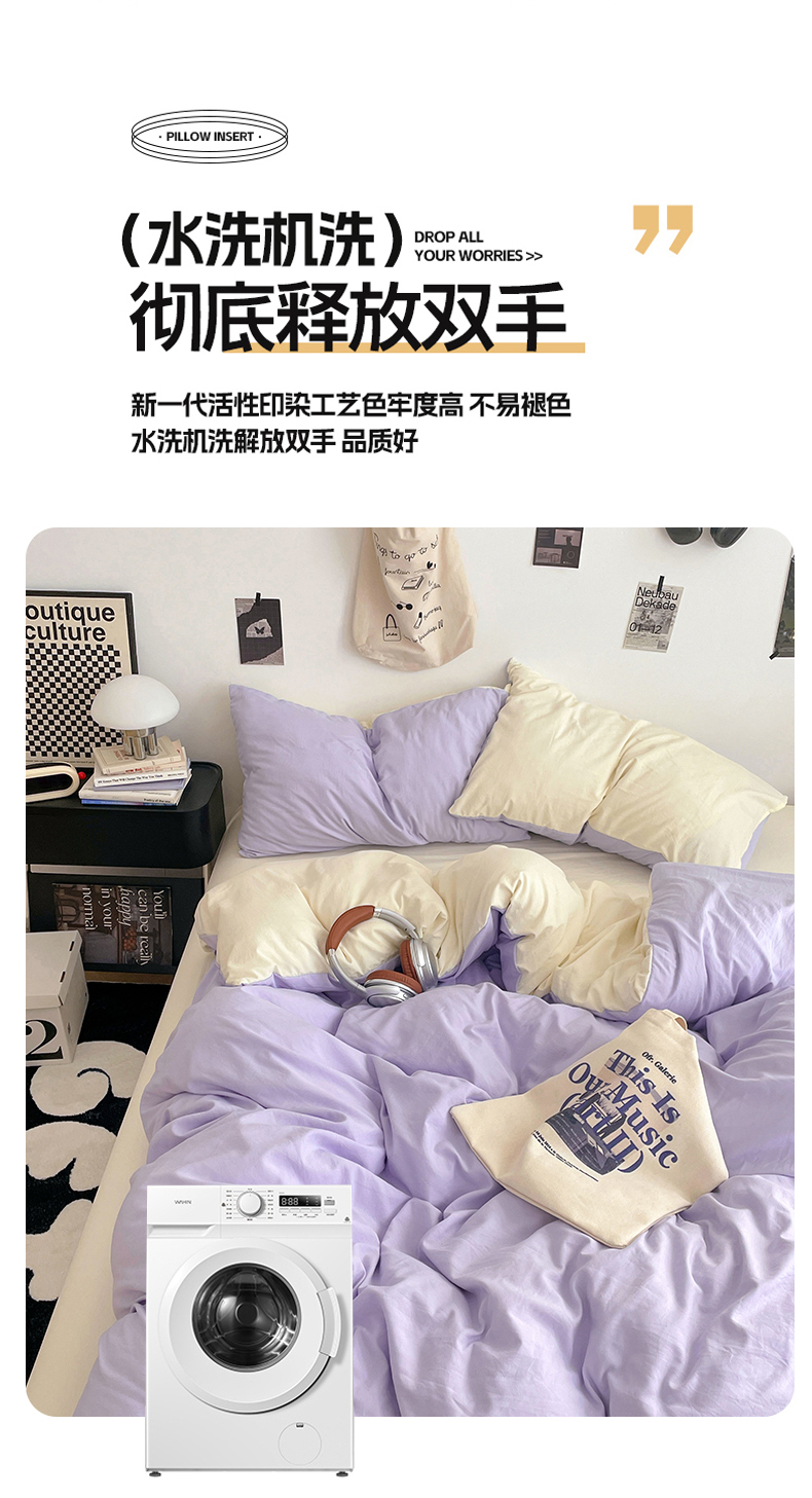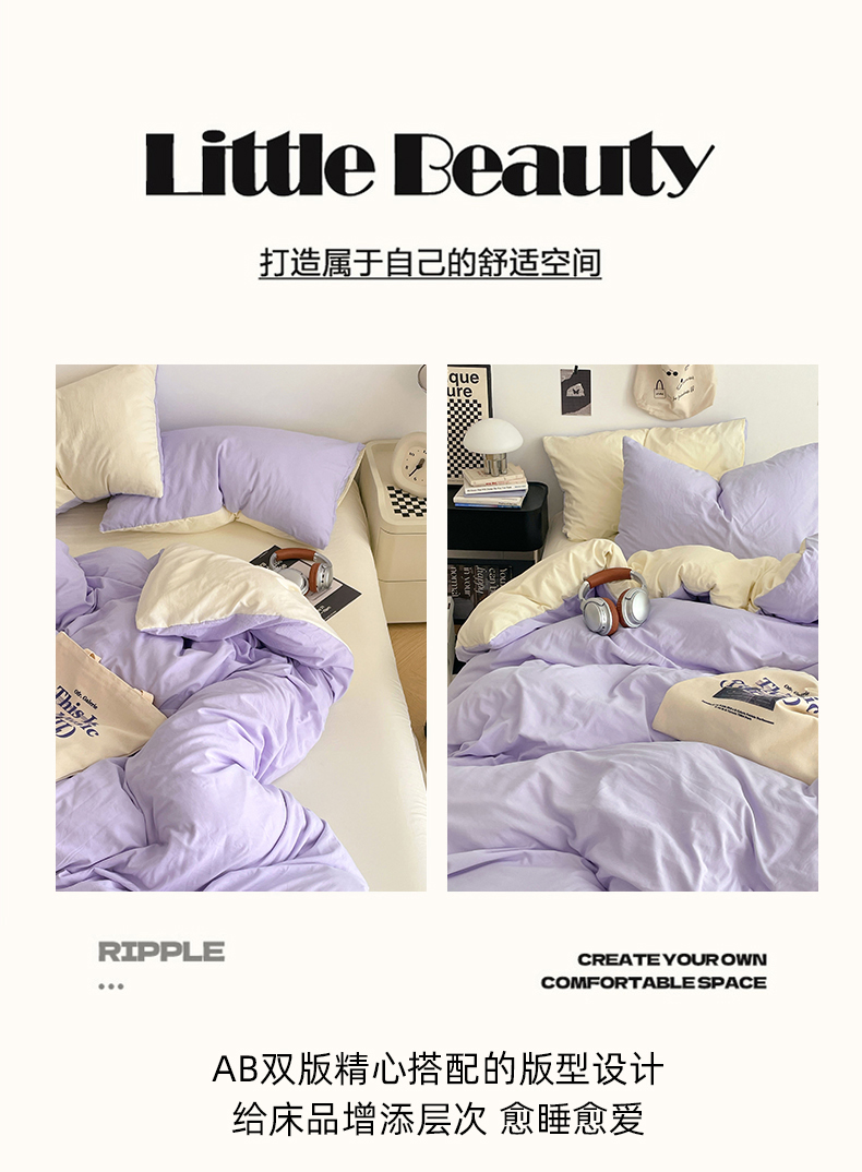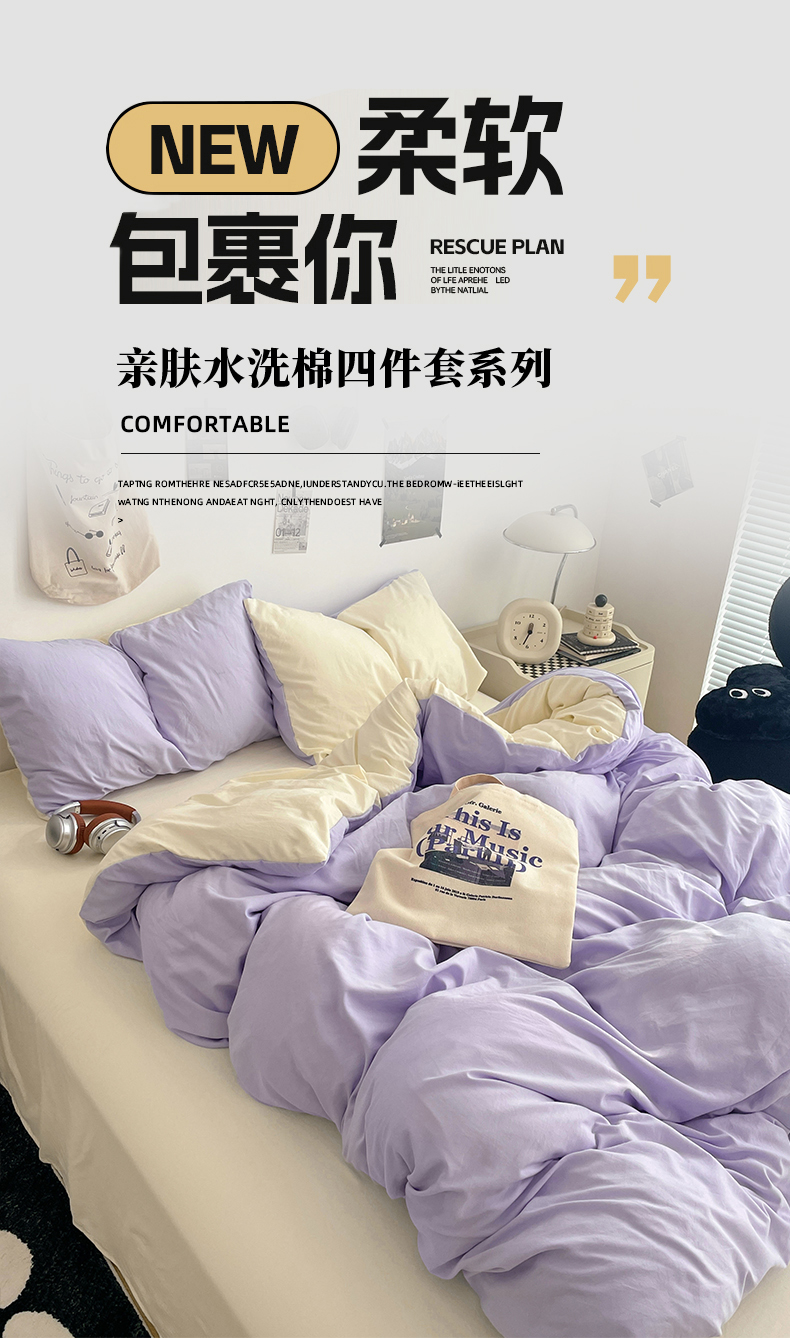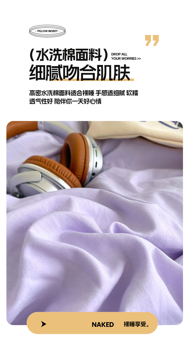 当前位置: 91家纺网 > 商品网购 > 床品套件 > 四件套 > 水洗棉四件套 > 优尚佳生活馆 2025新款INS风亲肤水洗棉四件套系列-纯色 紫色时光