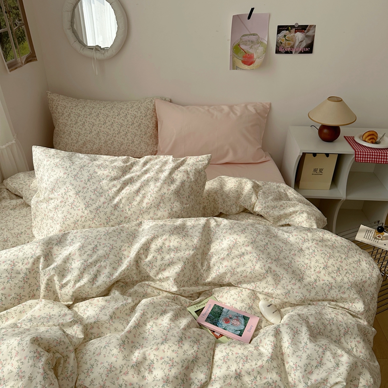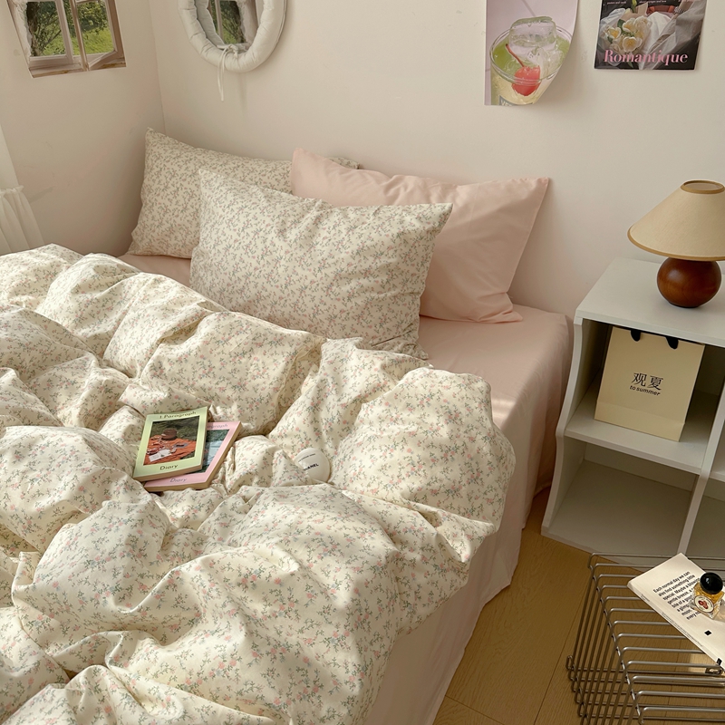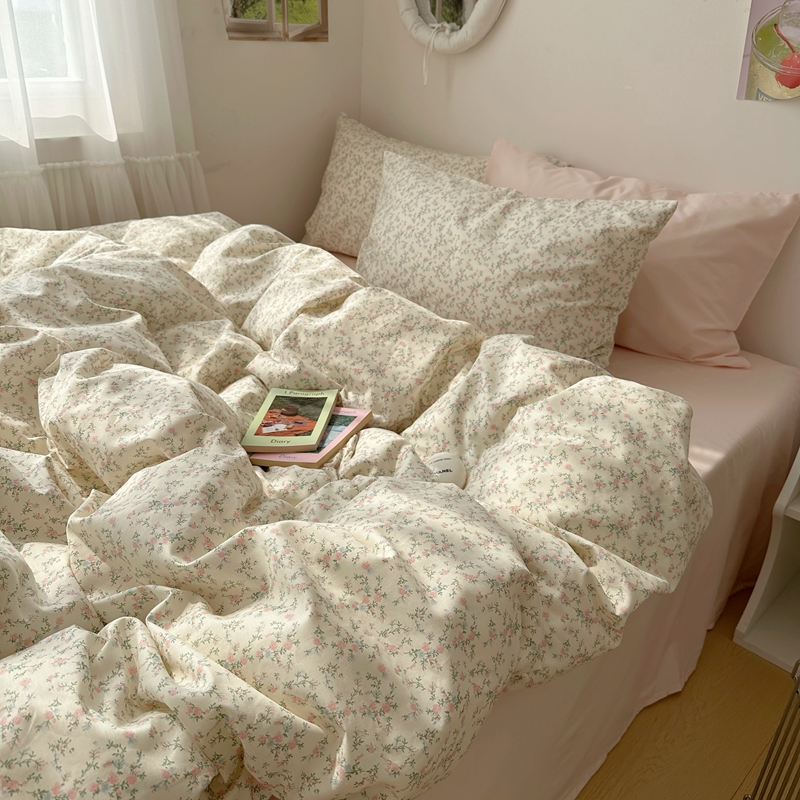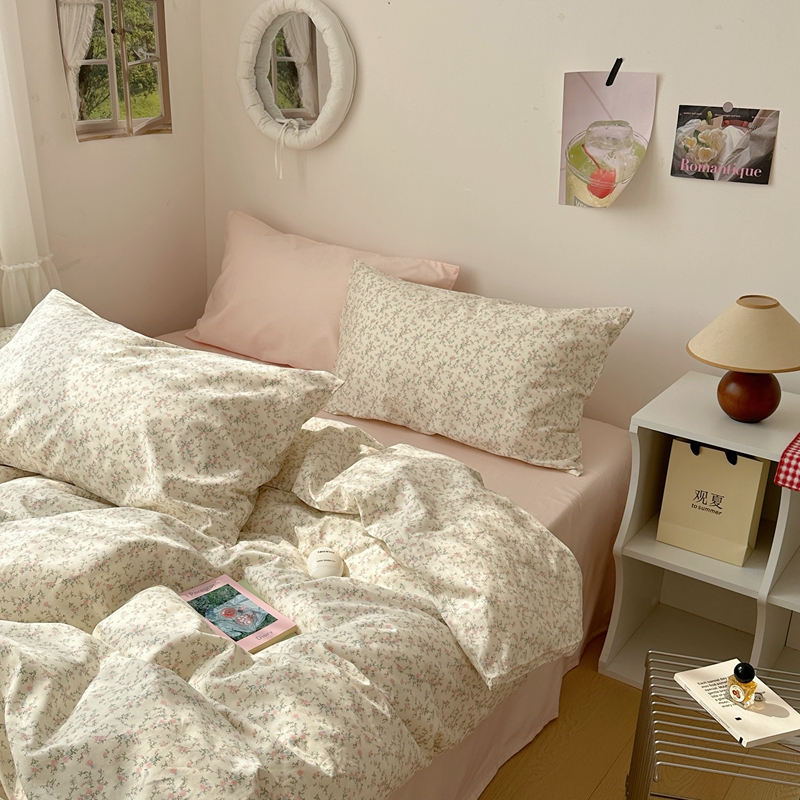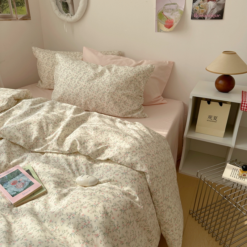 当前位置: 91家纺网 > 商品网购 > 床品套件 > 四件套 > 全棉普通四件套 > (总)尺素 2025新款田园小清新纯棉四件套出口韩国ins博主风全棉被套纯色加大床单1.8床笠印花枕套学生宿舍三件套