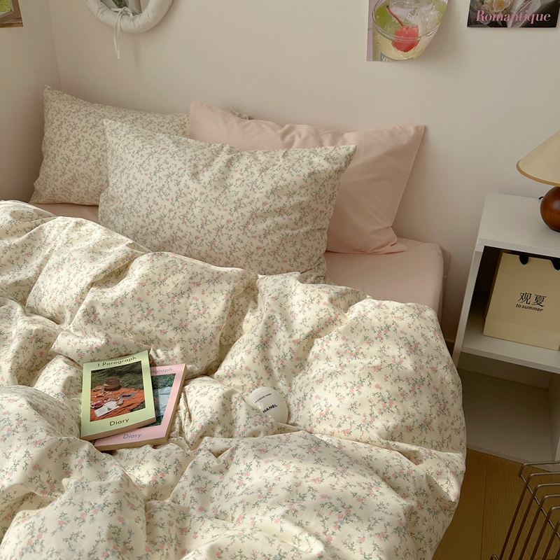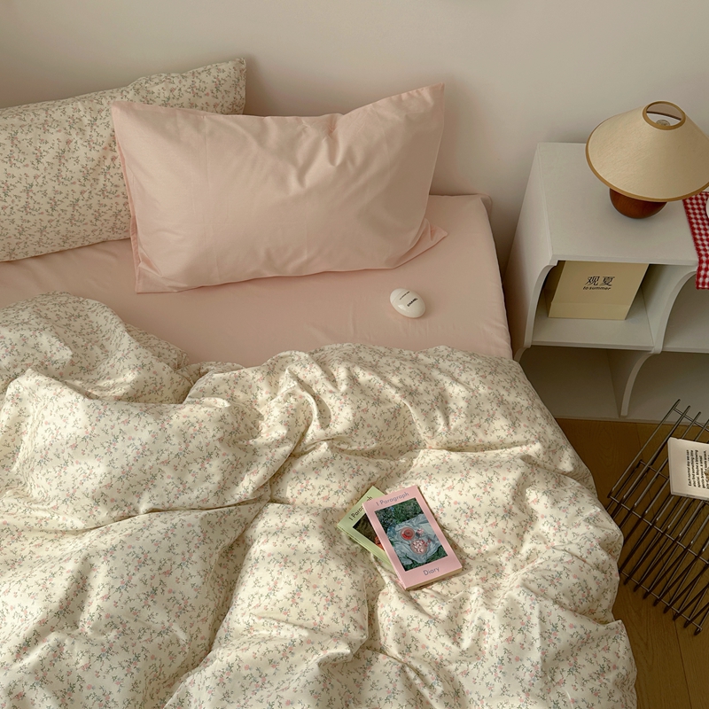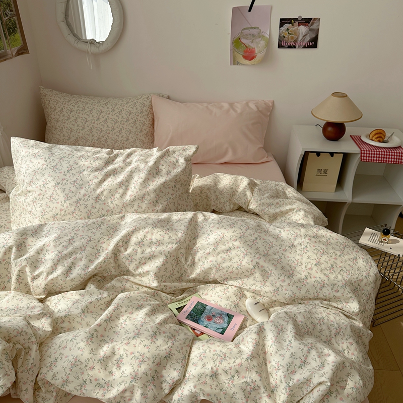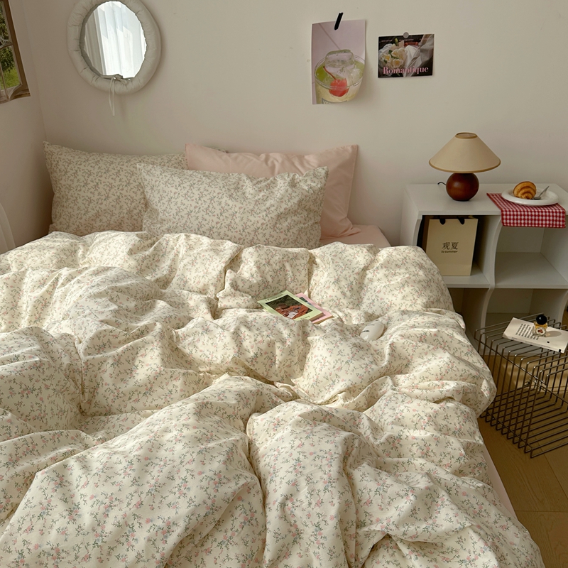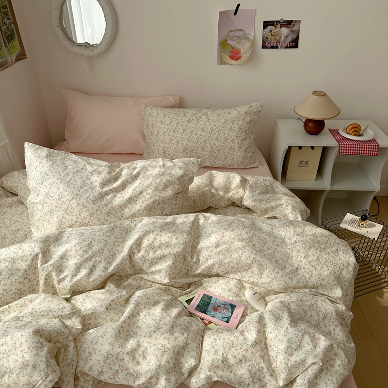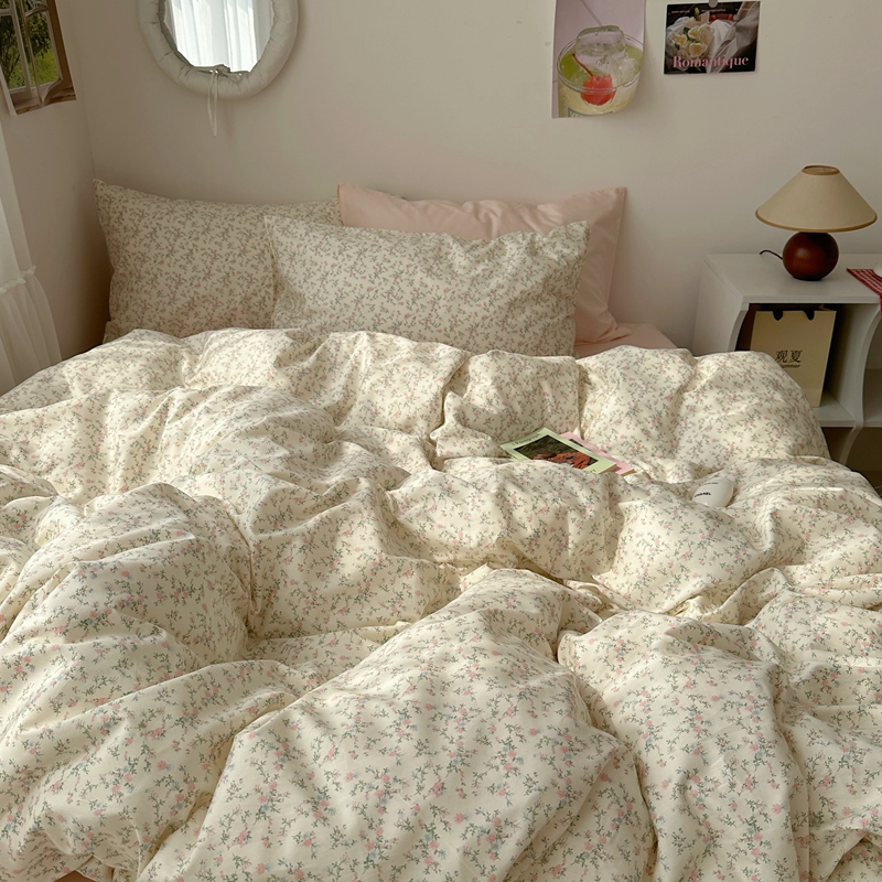 当前位置: 91家纺网 > 商品网购 > 床品套件 > 四件套 > 全棉普通四件套 > (总)尺素 2025新款田园小清新纯棉四件套出口韩国ins博主风全棉被套纯色加大床单1.8床笠印花枕套学生宿舍三件套