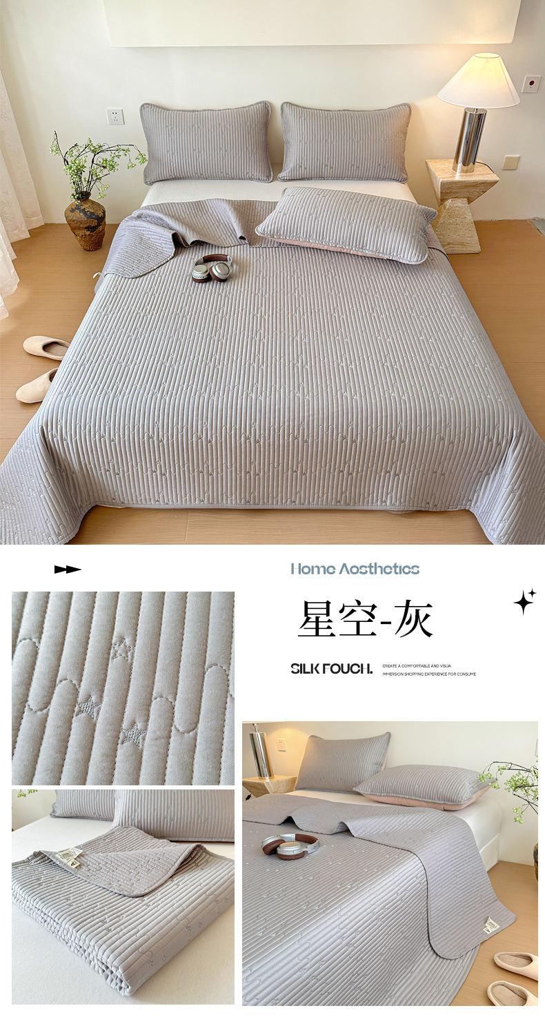 (总)恒尚居 2025新款莫代尔天丝夏季床盖绗缝星星刺绣夹棉床单三件套