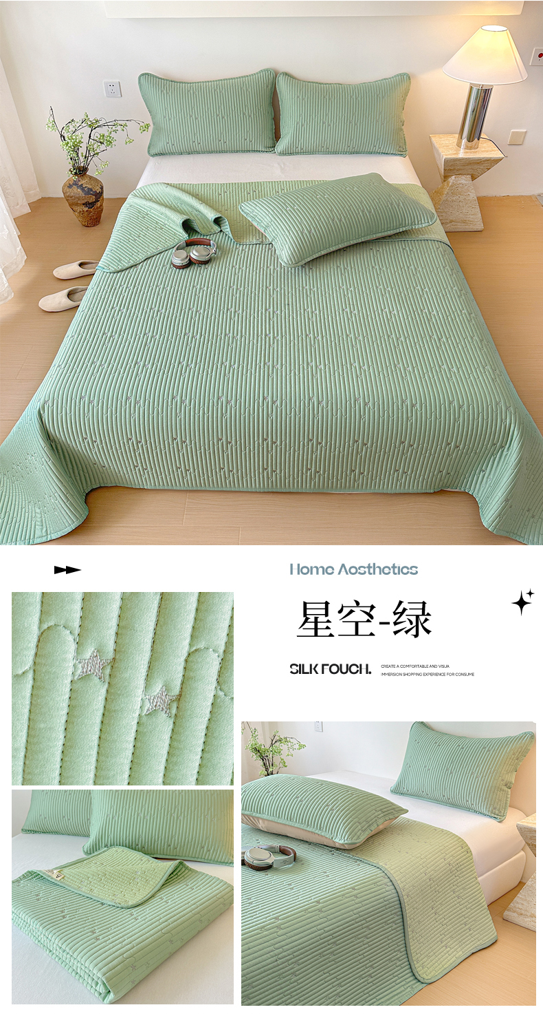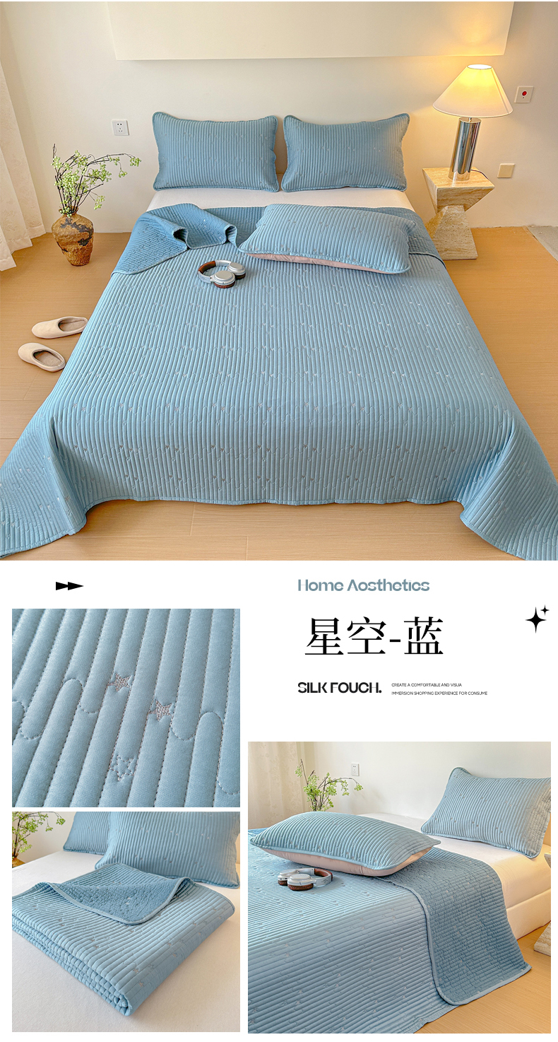 商品名称:(总)恒尚居 2025新款莫代尔天丝夏季床盖绗缝星星刺绣夹棉床单三件套