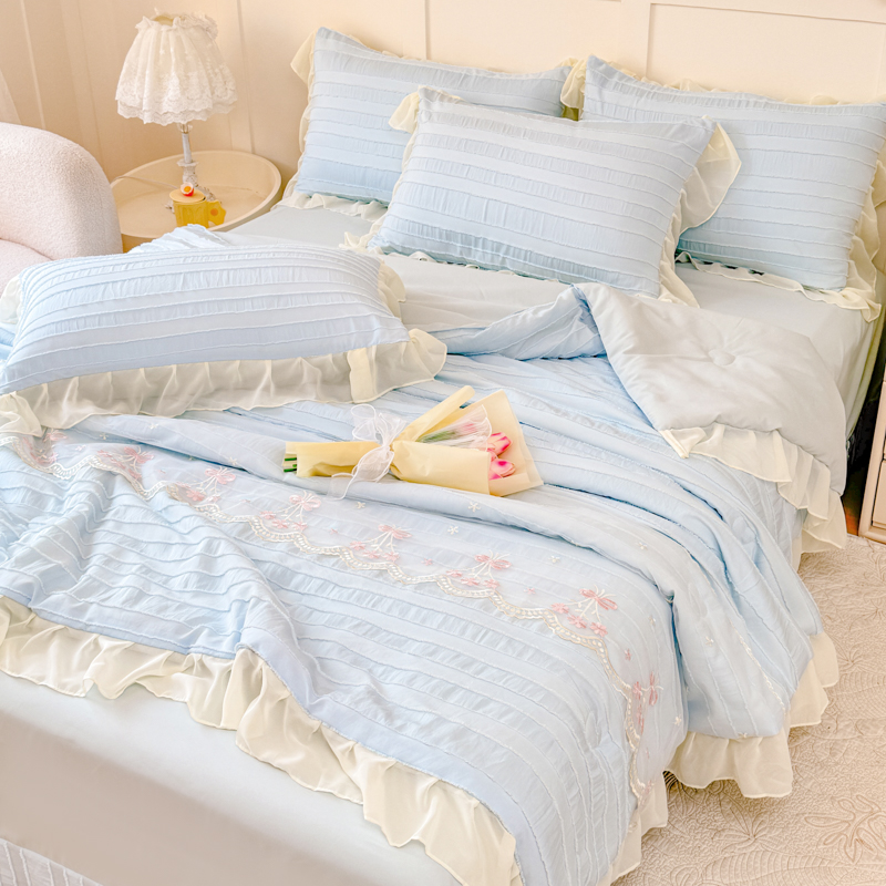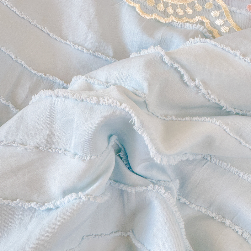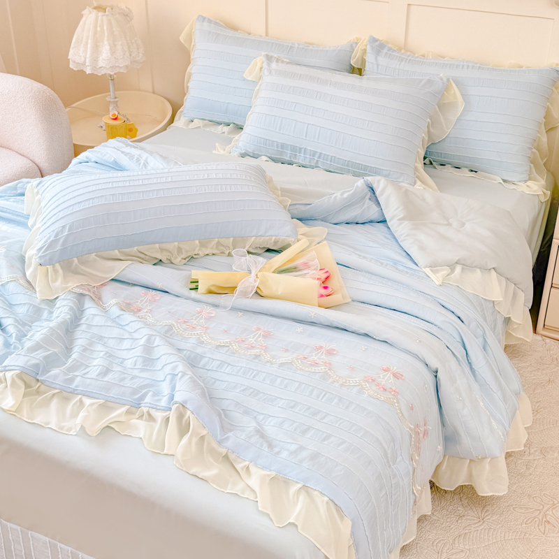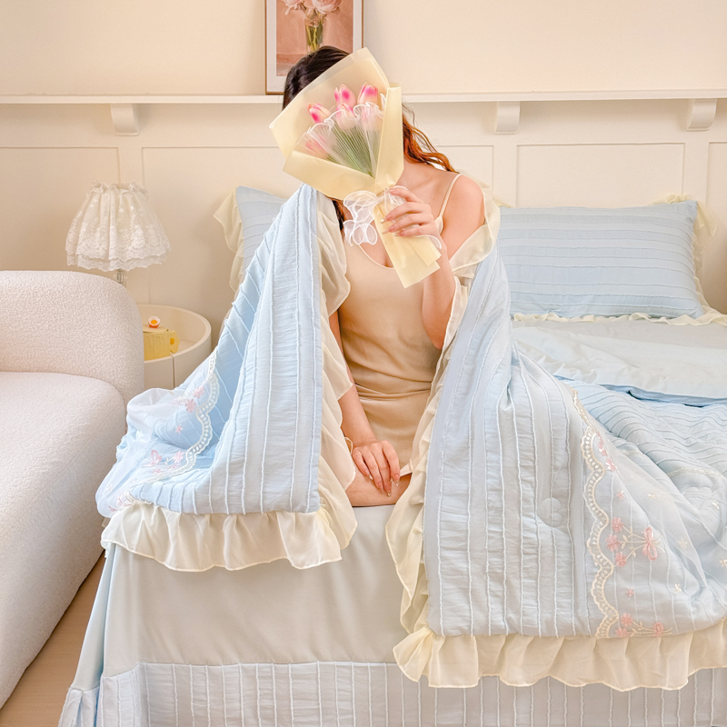 商品名称:爱家(原缔乐家纺) 2025新款水洗棉剪花蕾丝夏被四件套-仙本娜 仙本娜天空兰