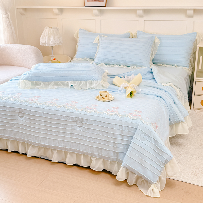 爱家(原缔乐家纺) 2025新款水洗棉剪花蕾丝夏被四件套-仙本娜 仙本娜天空兰