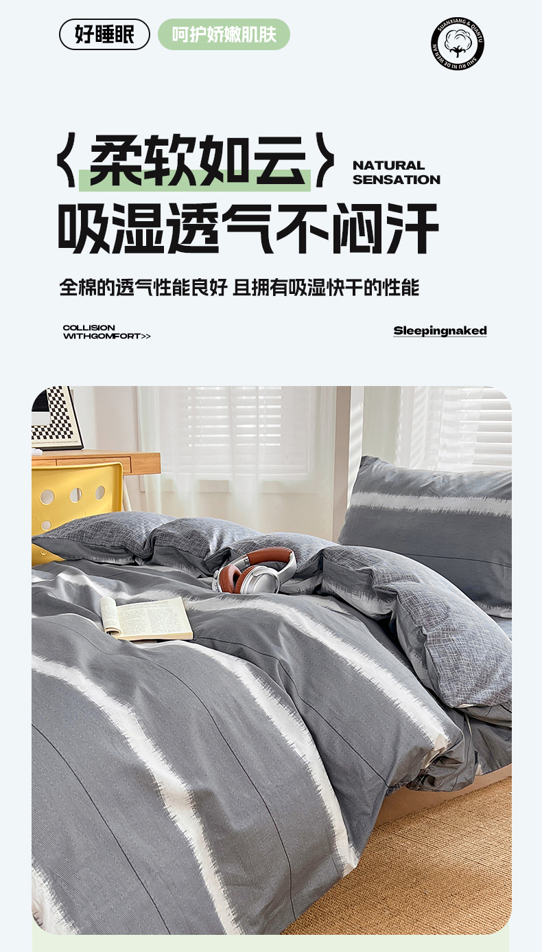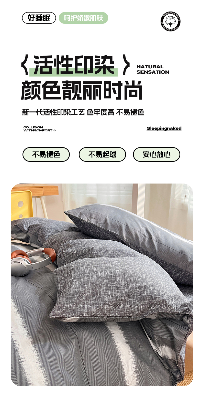 (总)2025新款13070全棉四件套加厚斜纹小清新床单被套学生宿舍三件套床单床笠款