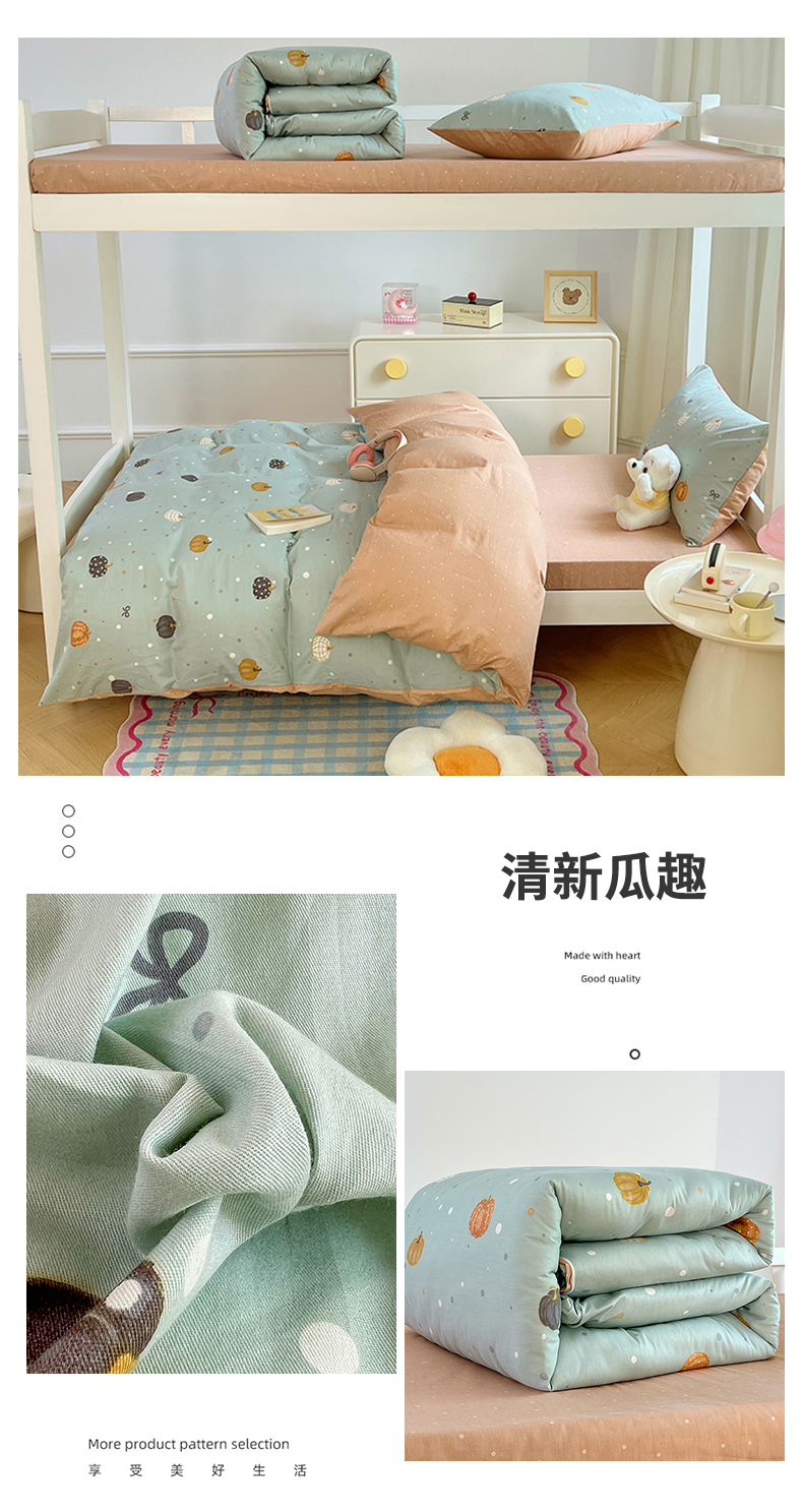 商品名称:(总)2025新款13070全棉四件套加厚斜纹小清新床单被套学生宿舍三件套床单床笠款