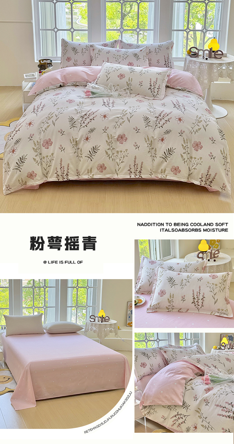 (总)珂博家纺 2025新款12868全棉纯棉小清新印花四件套学生宿舍三件套-系列二,繁花似锦,粉萼摇青,粉穹星语,浮青曳紫,结系花铃,汪星织梦,樱露垂角