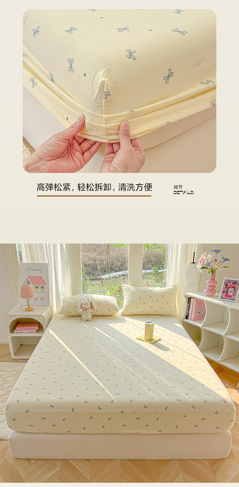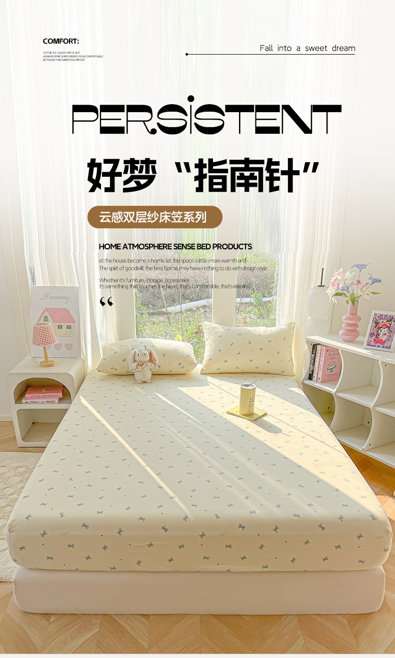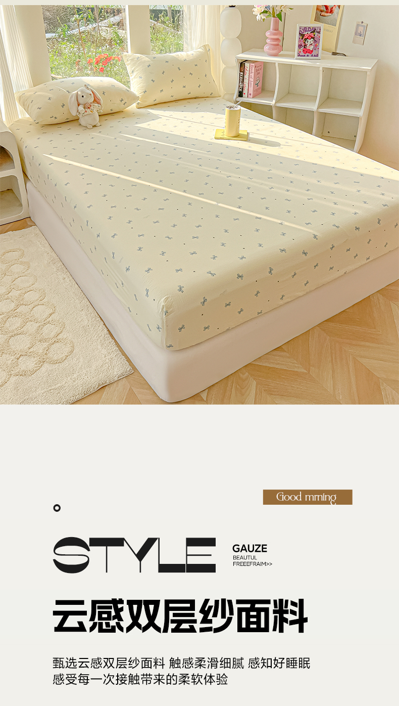 • 91家纺网 家纺一手货源 找家纺 韩巢家纺 2025新款云感提花双层纱单床笠热销款防滑床笠单件 蓝相思