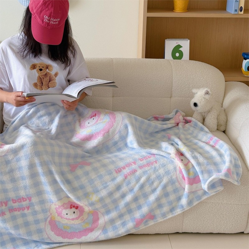 顾里家纺 2025新款ins少女奶油系双面牛奶绒毯-第二组 蛋糕花猫