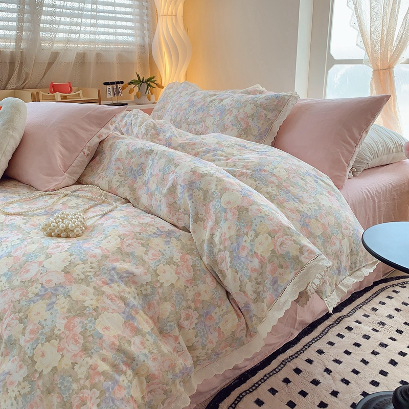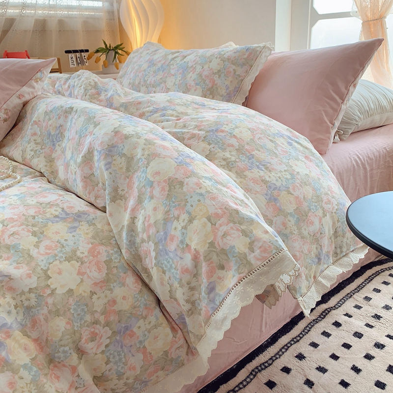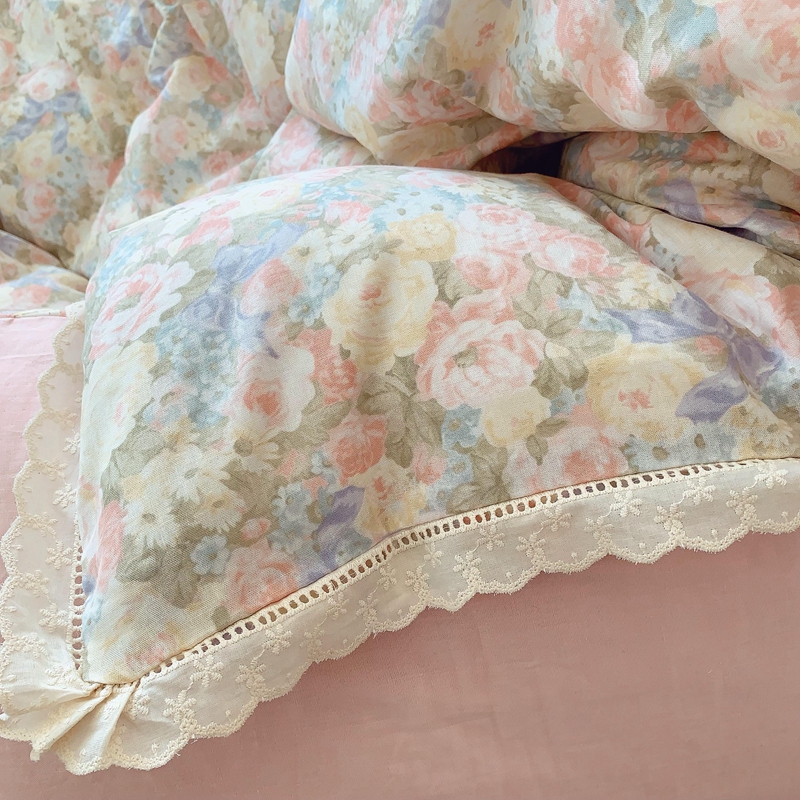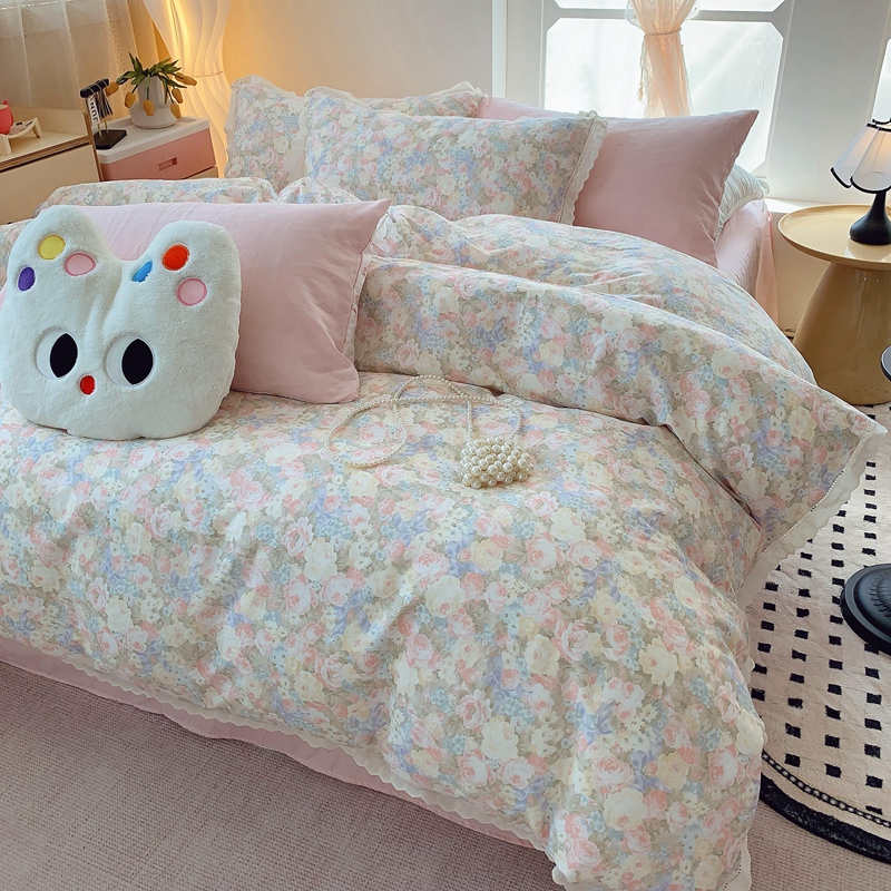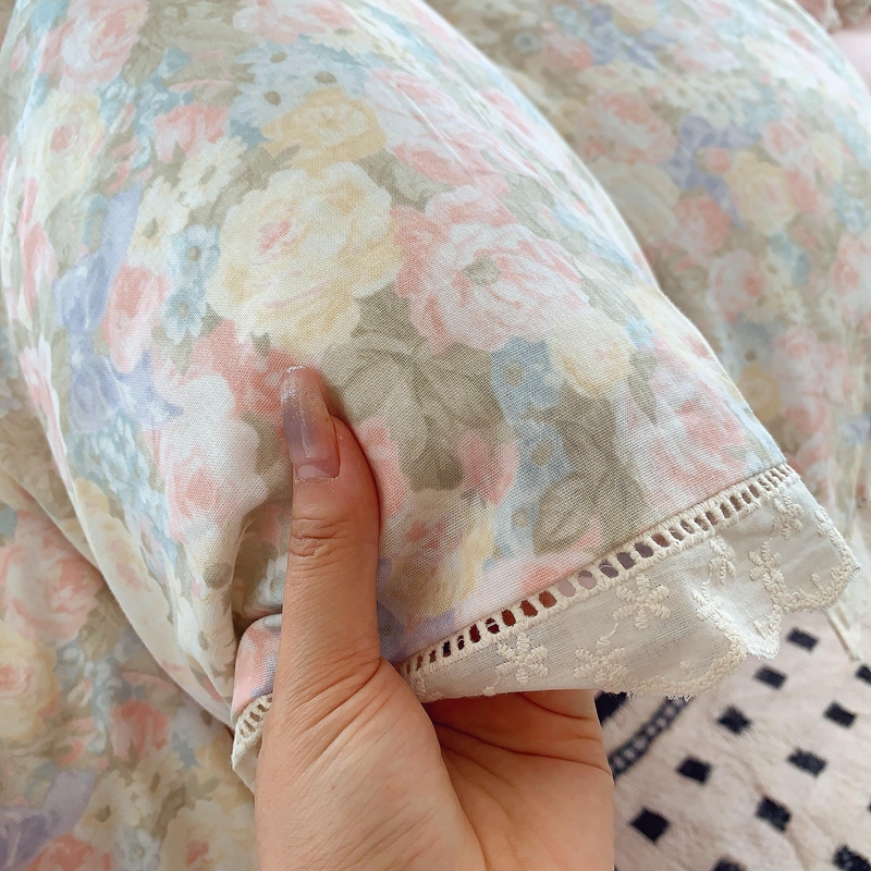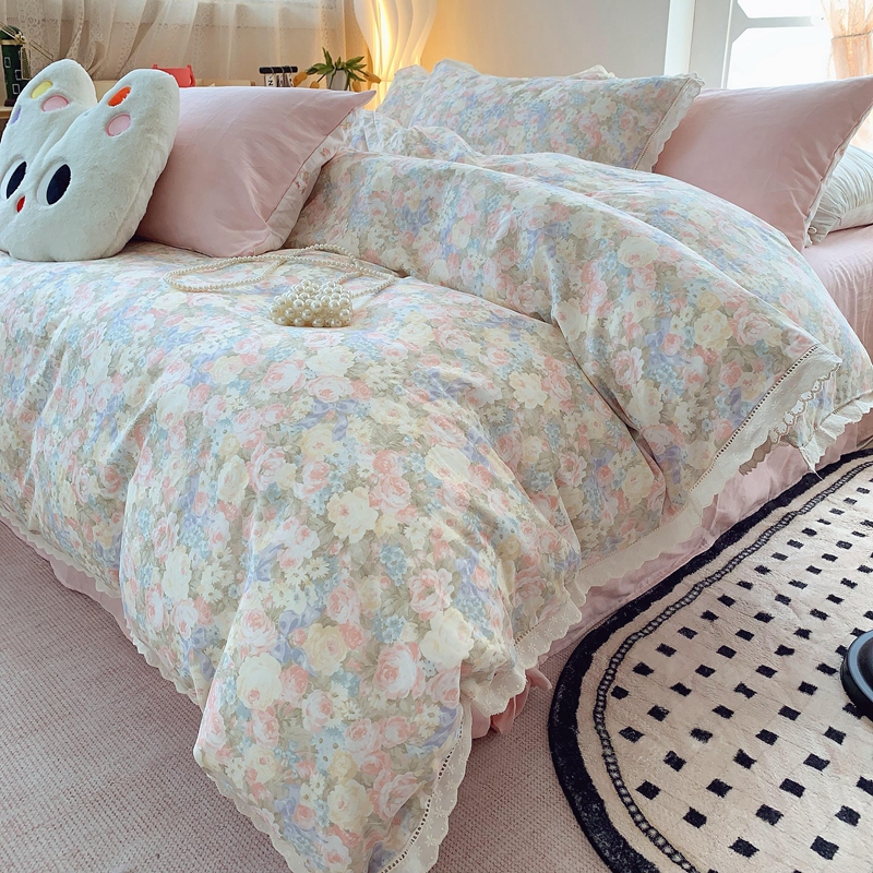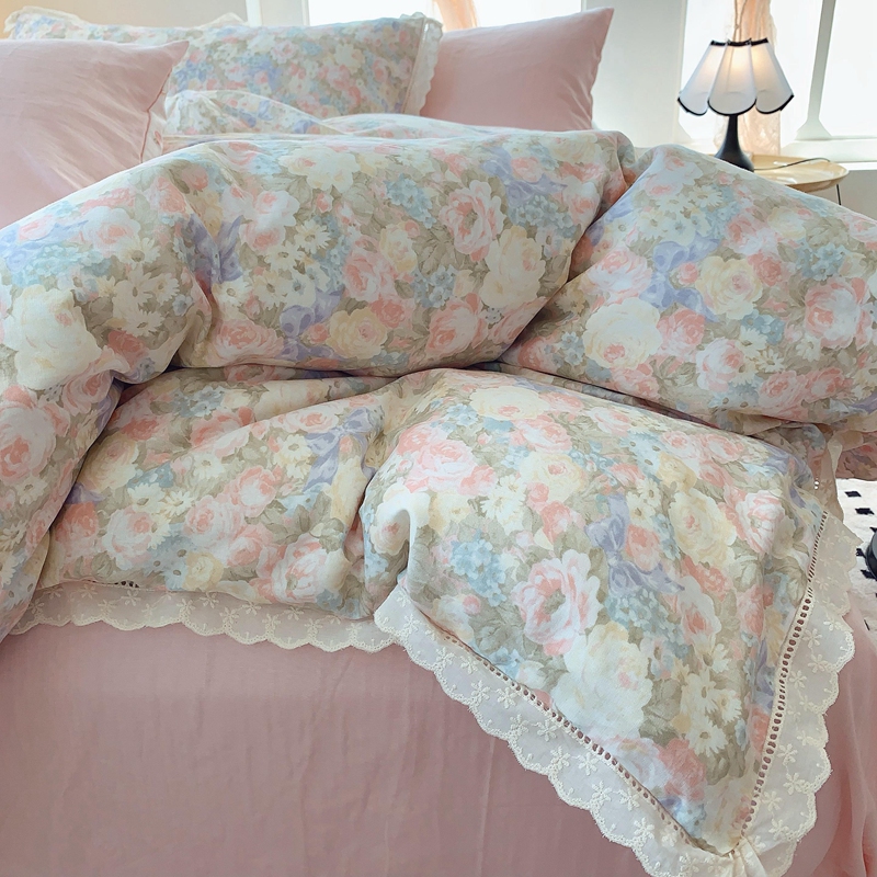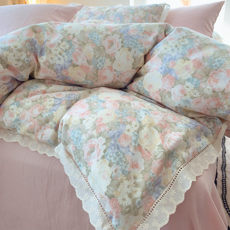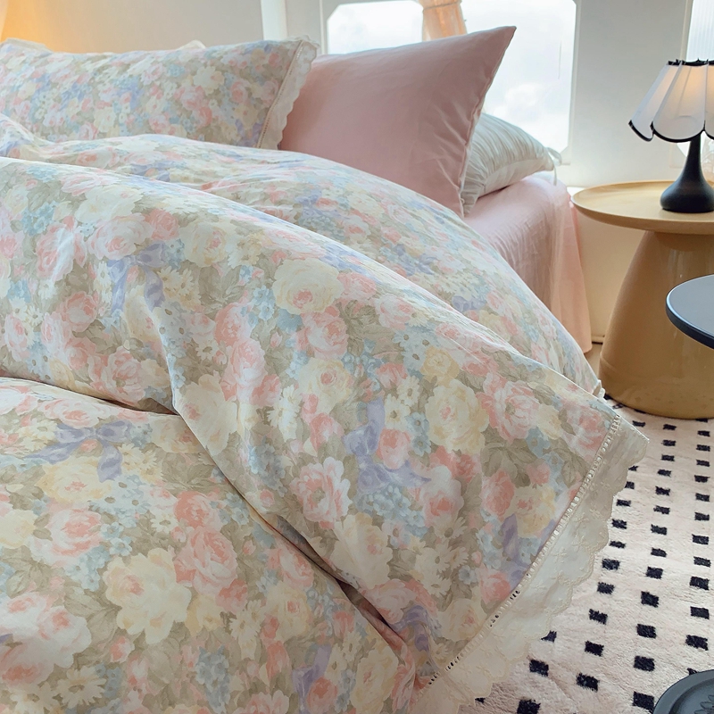 奈萝家纺 2025新款全棉双层纱花边款四件套 暖阳绿意