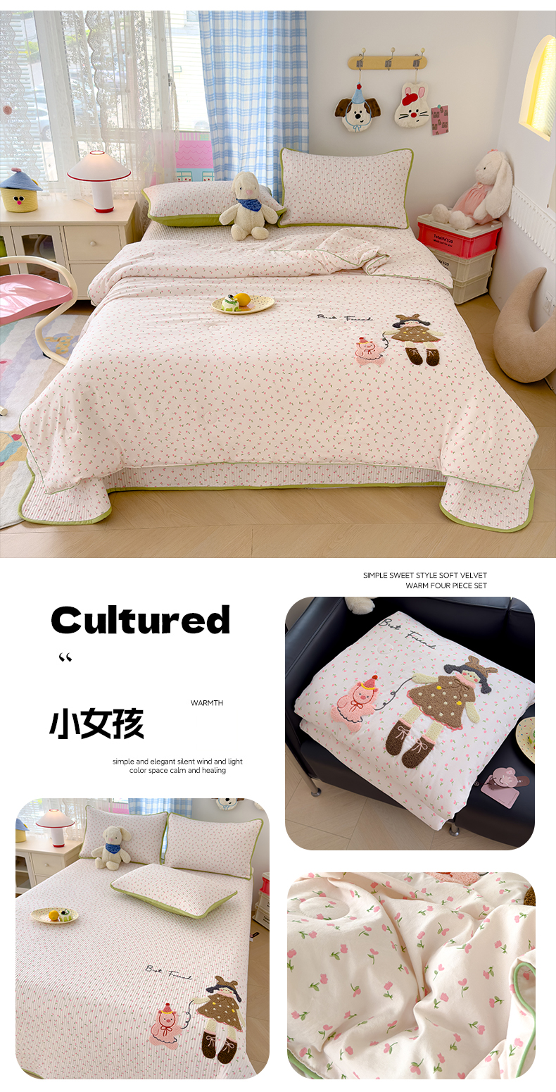 当前位置: 91家纺网 > 商品网购 > 床品套件 > 四件套 > 夏被四件套 > 赫梵茜 2025新款云朵棉毛巾绣床盖夏被被套四件套 月亮兔子