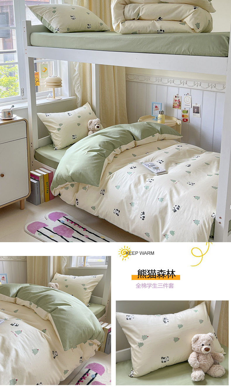 当前位置: 91家纺网 > 商品网购 > 床品套件 > 三件套 > 麦伦家居 2025新款40支13372全棉纯棉斜纹学生上下铺床品宿舍三件套上下铺四件套系列 熊猫森林