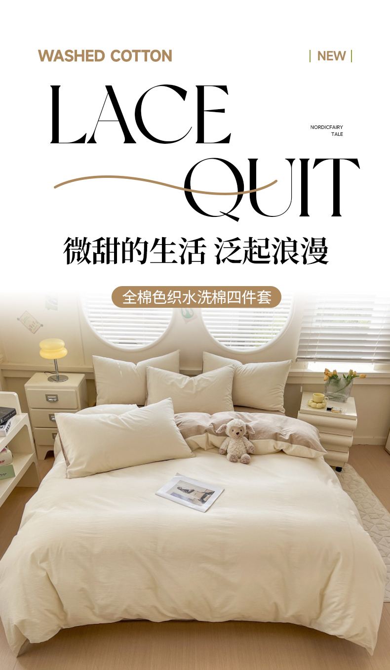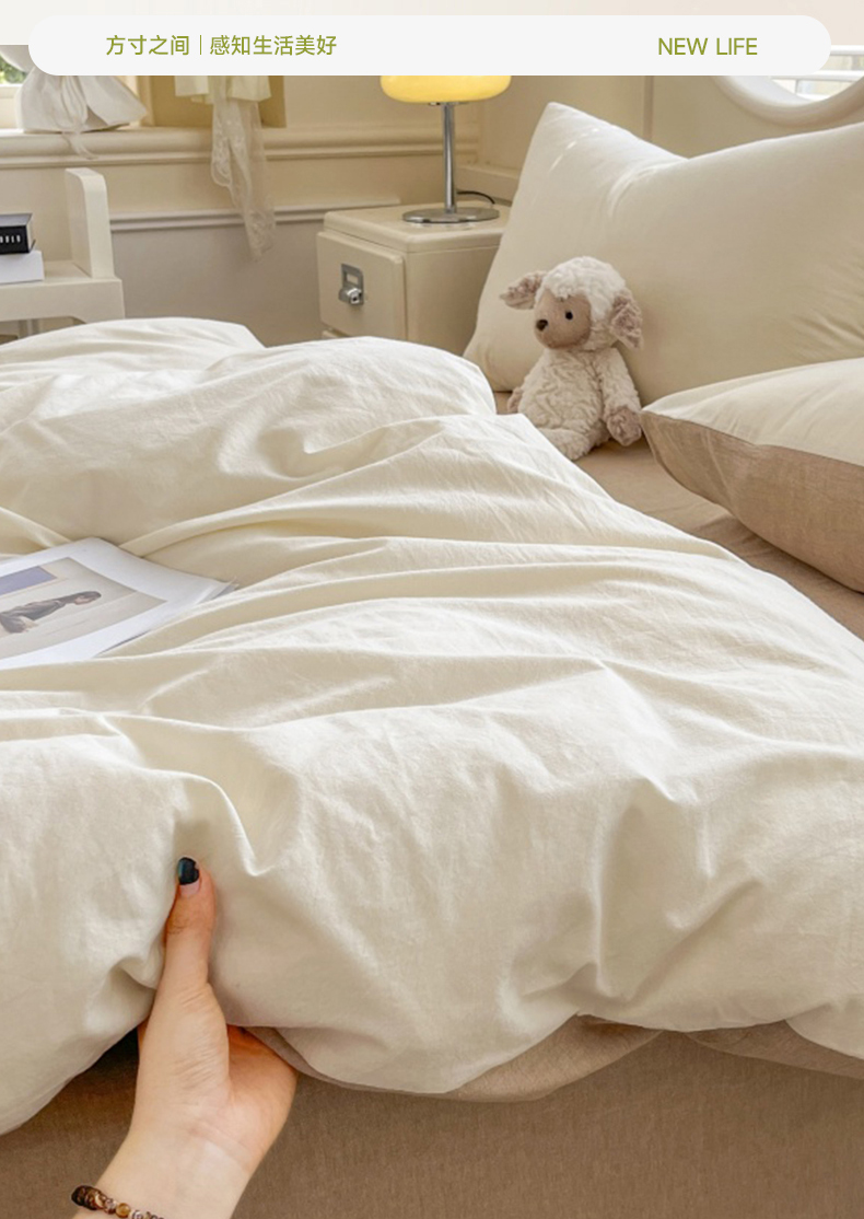当前位置: 91家纺网 > 商品网购 > 床品套件 > 四件套 > 色织四件套 > 菡宝 【不断货 预留5公分缩水】a类母婴级纯棉全棉色织水洗棉四件套 支持定制定做尺寸 奶昔白米卡其