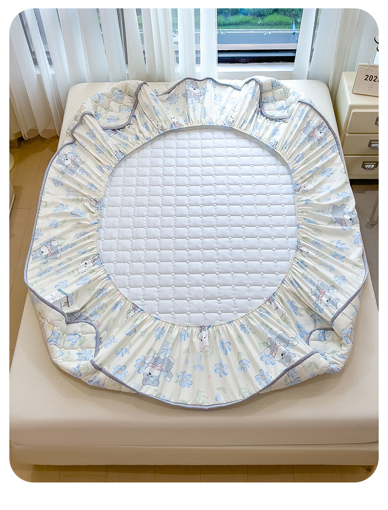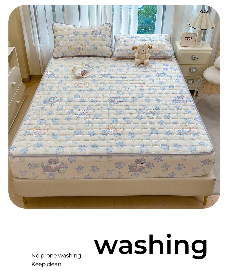 (总)雯豆家纺 2025新款复古风皱皱棉印花夹棉床笠三件套加厚床垫保护套,小南瓜,春日小狗,初夏,浪漫花语,爱尔蓝,初心,蝴蝶结小猫,花小愈,可爱TK,快乐萌宝,快乐时光,毛球团团,蘑菇仙子,奶萌小狗,小苍兰