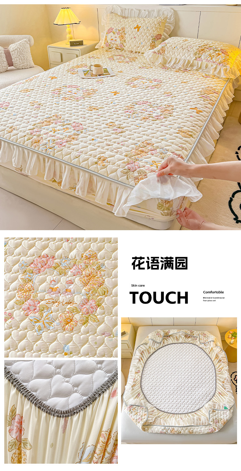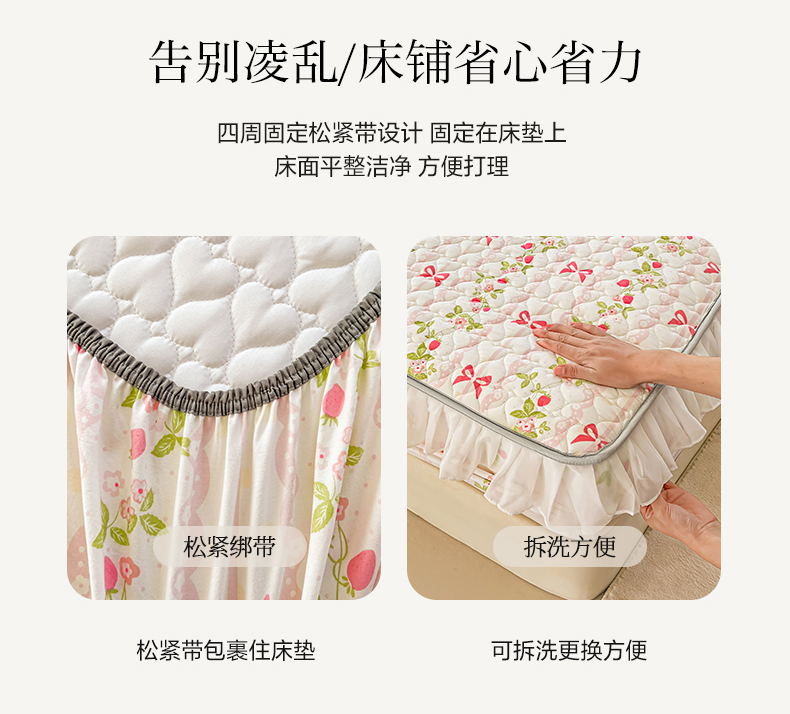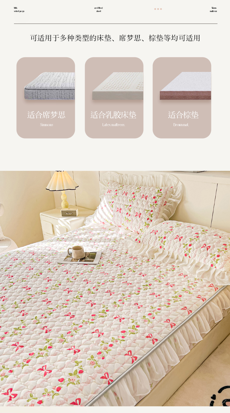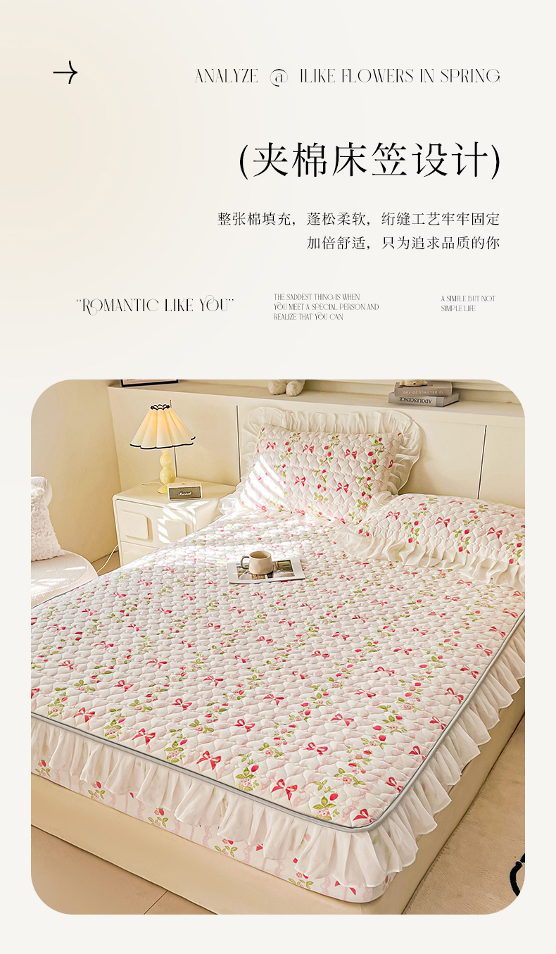 商品名称:(总)眠势力 2025新款韩版花边夹棉床笠单件公主风四季款床垫保护套床罩
