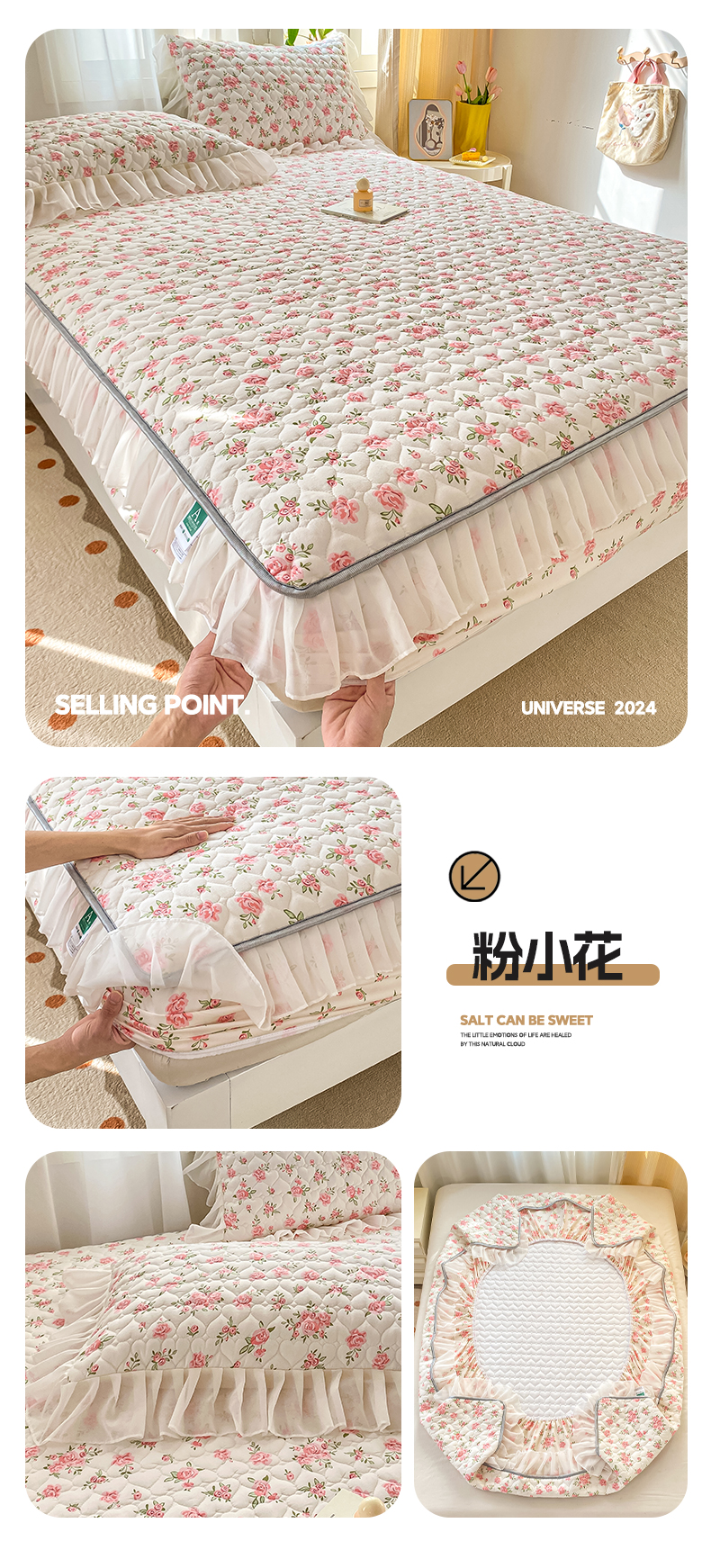 (总)眠势力 2025新款韩版花边夹棉床笠单件公主风四季款床垫保护套床罩