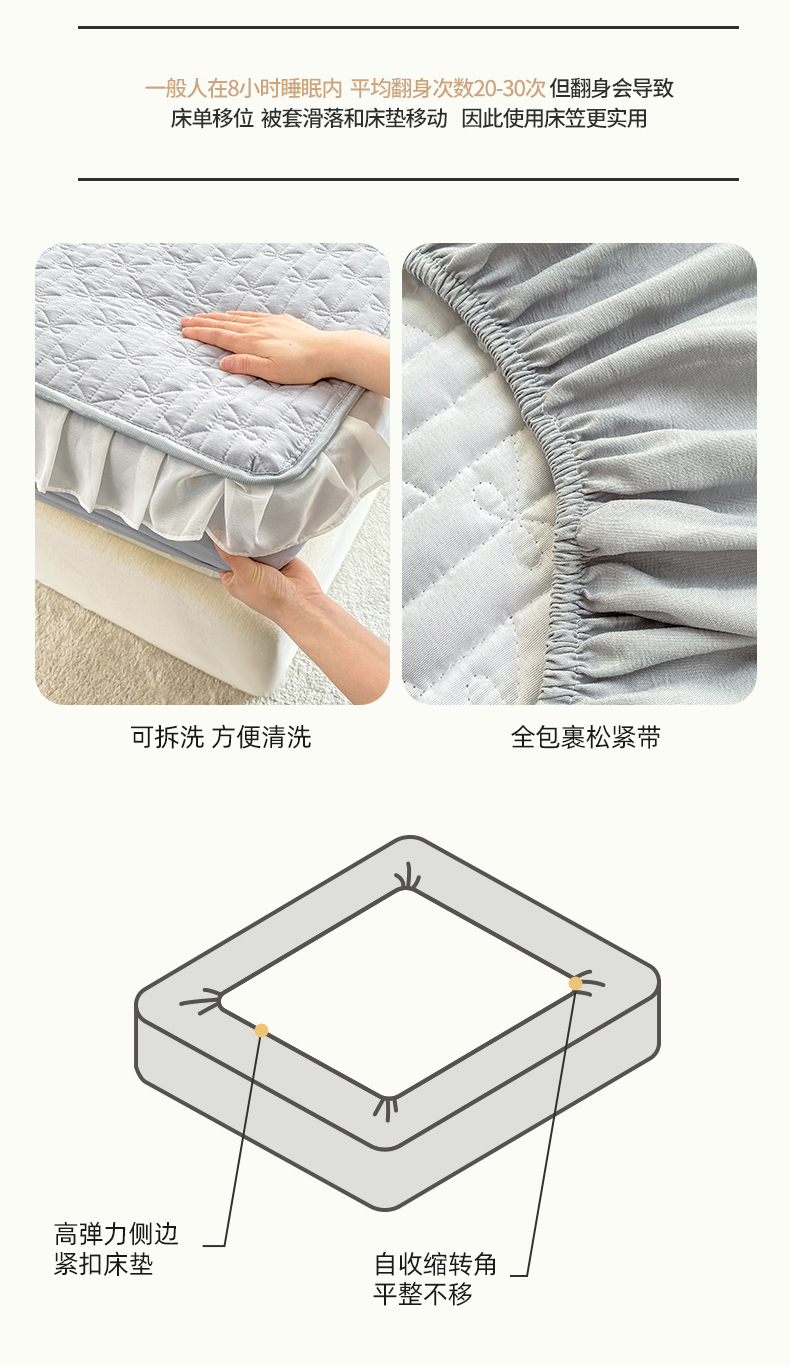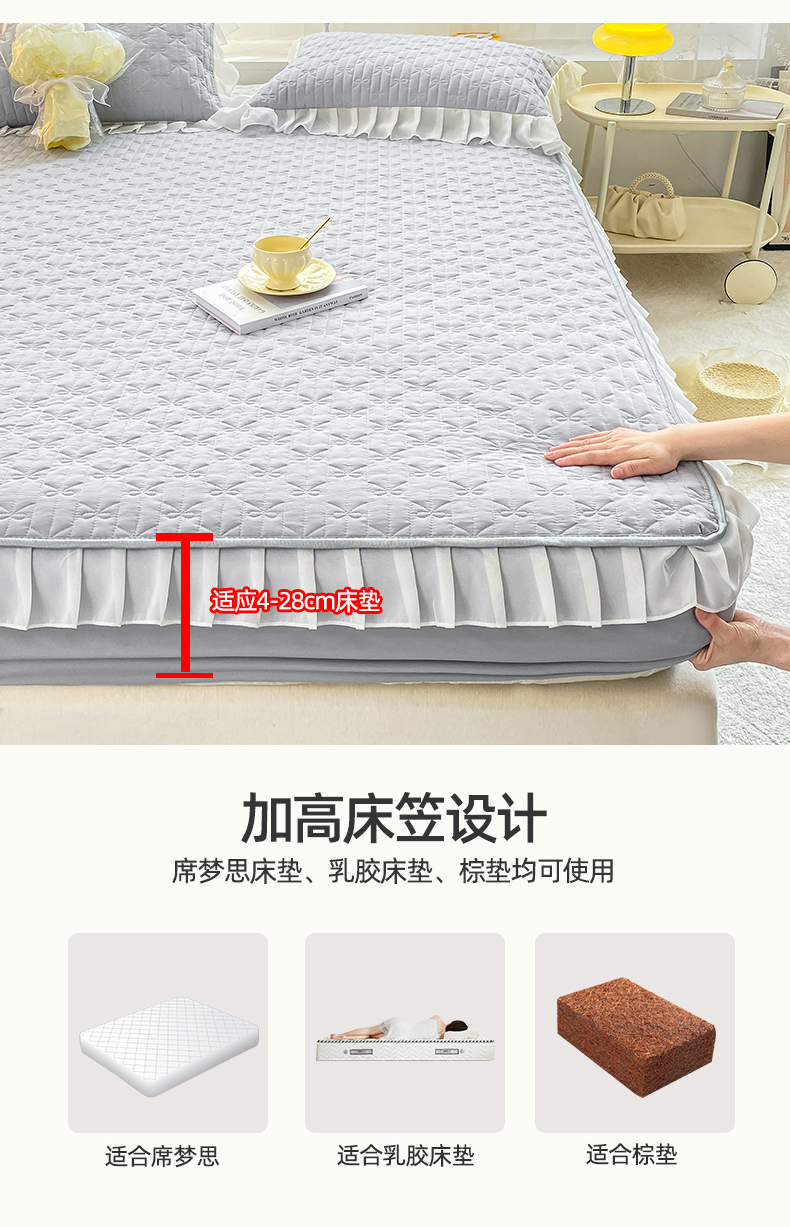 当前位置: 91家纺网 > 商品网购 > 床上用品 > 床笠 > 眠势力 2025新款韩版花边夹棉床笠单件公主风四季款床垫保护套床罩 纯色系-冰山灰