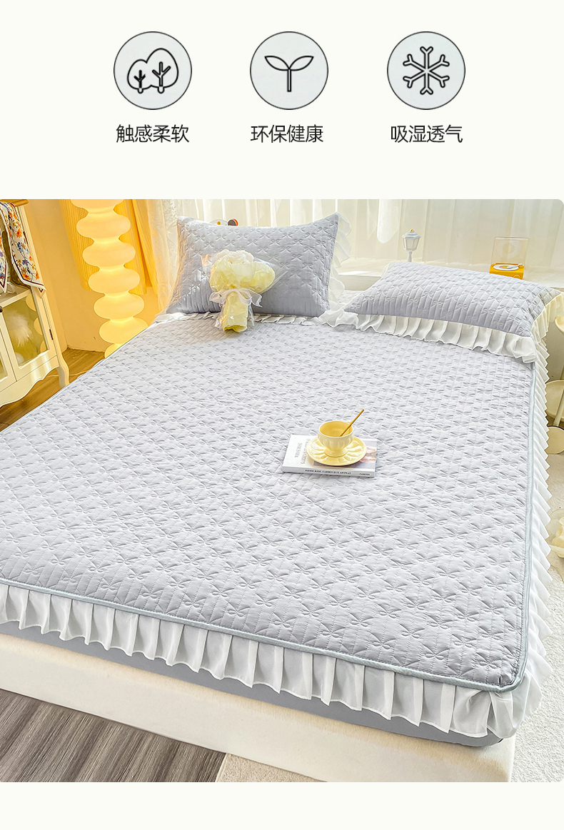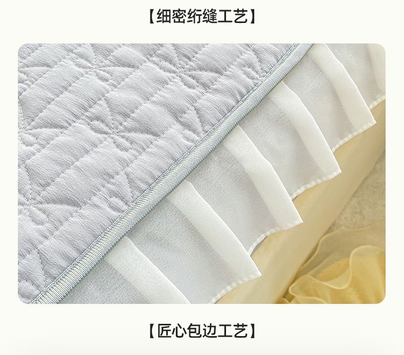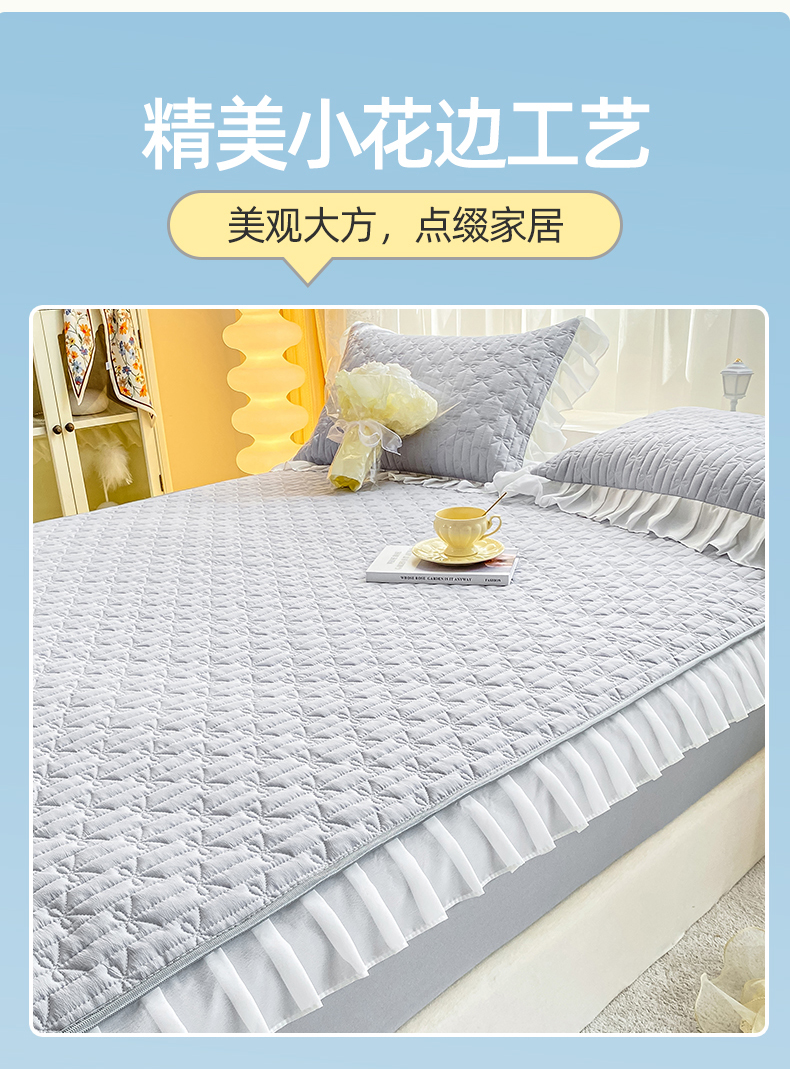 • 91家纺网 家纺一手货源 找家纺 眠势力 2025新款韩版花边夹棉床笠单件公主风四季款床垫保护套床罩 纯色系-冰山灰