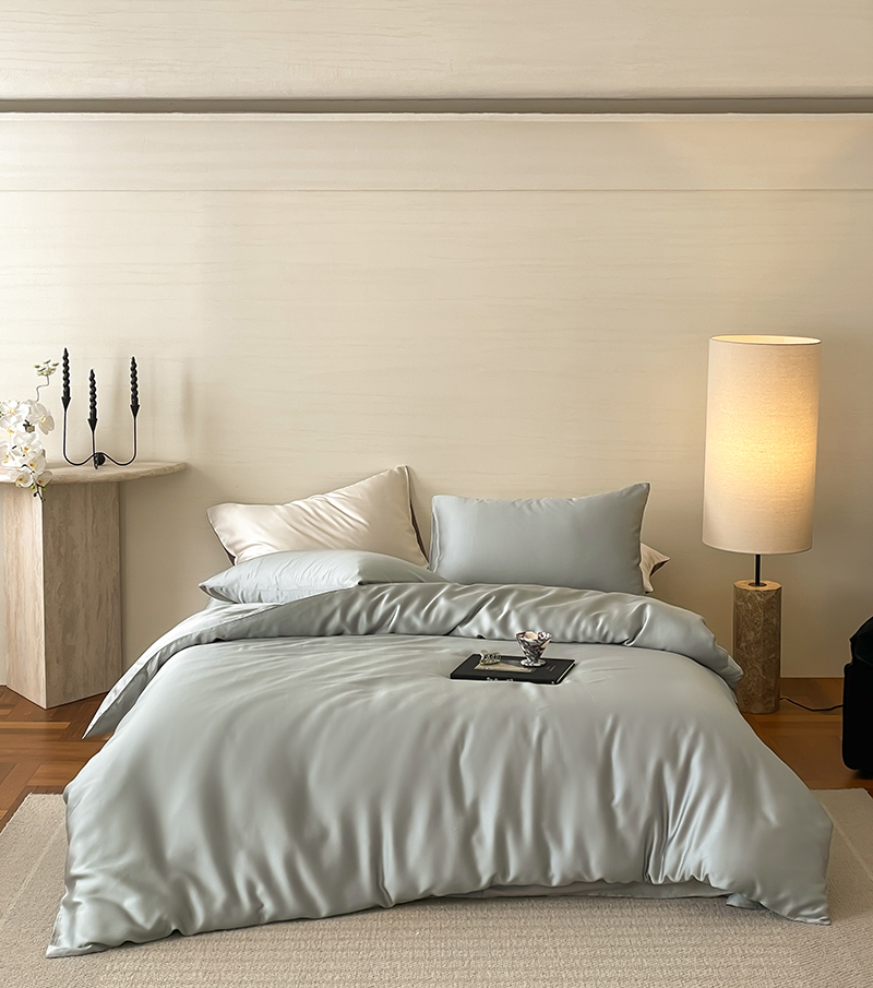 威克凯丽 2025新款60支纯色兰精天丝四件套--风格二 烟轻绿