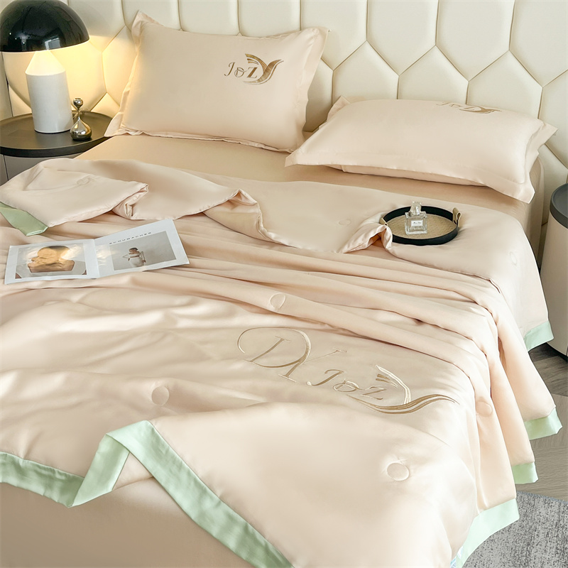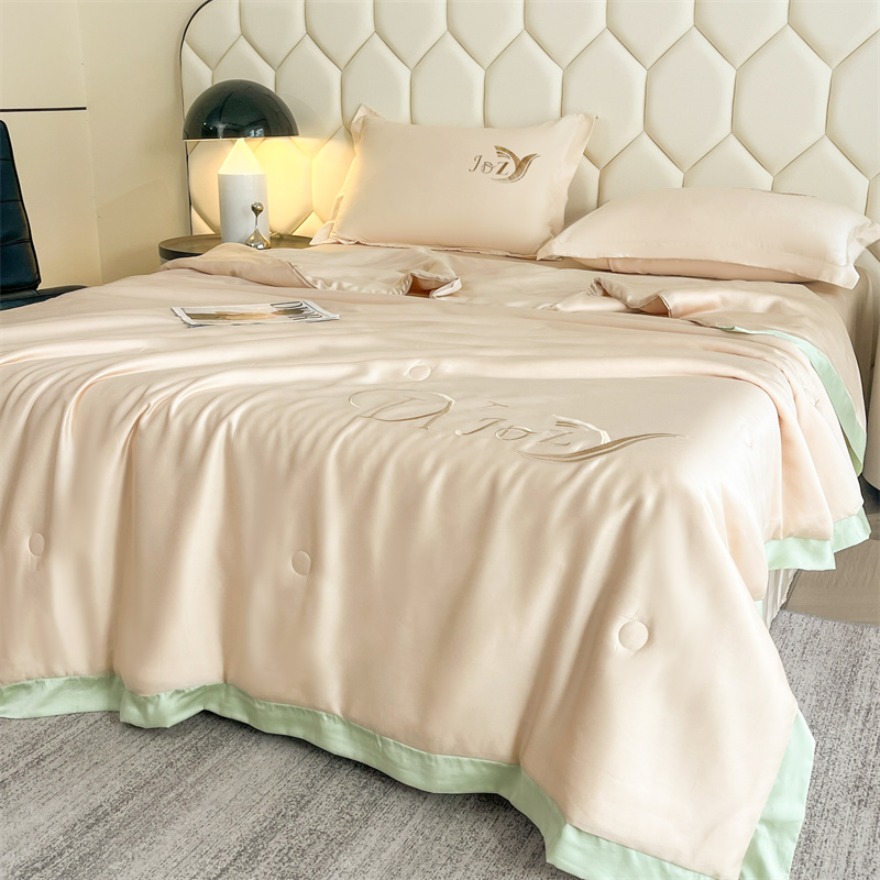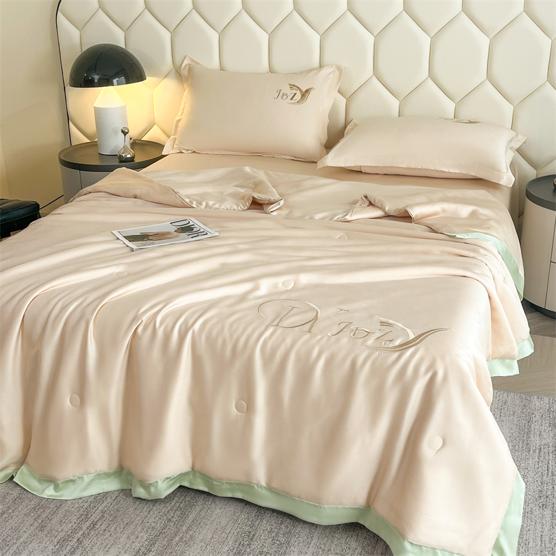 蕾诺家纺 2025新款水洗真丝夏被纯色宽边夏被 水洗真丝-香槟金