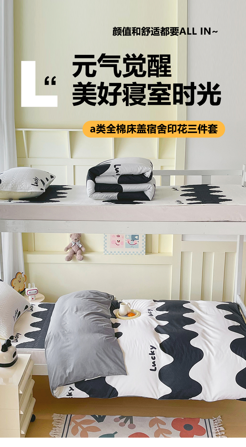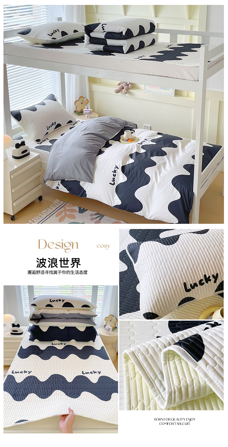 当前位置: 91家纺网 > 商品网购 > 床品套件 > 三件套 > 金鑫汇家纺2025新款A类宿舍全棉印花床盖三件套 波浪世界