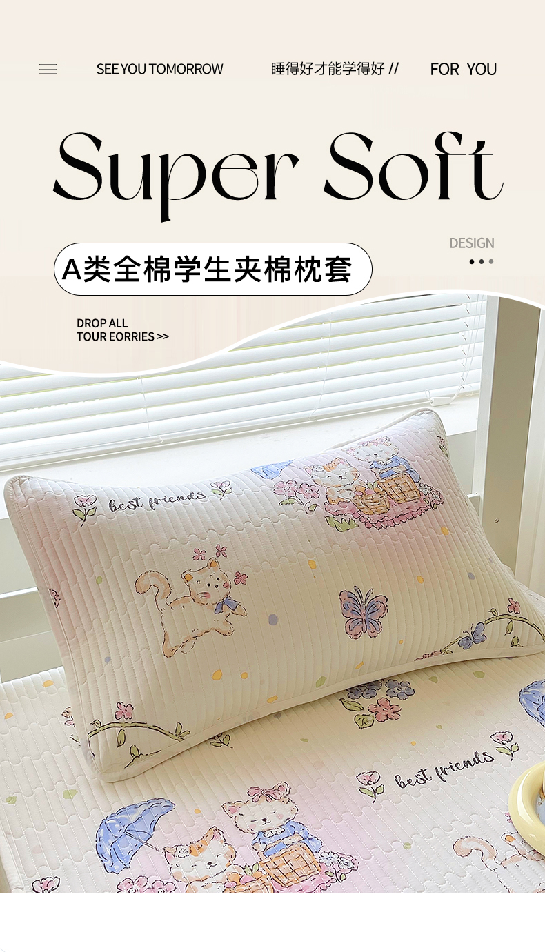 金鑫汇家纺2025新款A类学生宿舍枕套系列单品 喵喵日记