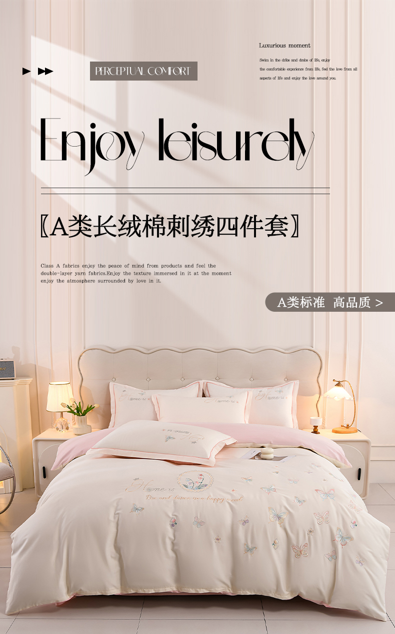 (总)登登家纺 2025新款A类长绒棉刺绣四件套-华尔兹,华尔兹-粉,华尔兹-粉白,华尔兹-粉紫,华尔兹-灰,华尔兹-蓝,华尔兹-青,华尔兹-紫