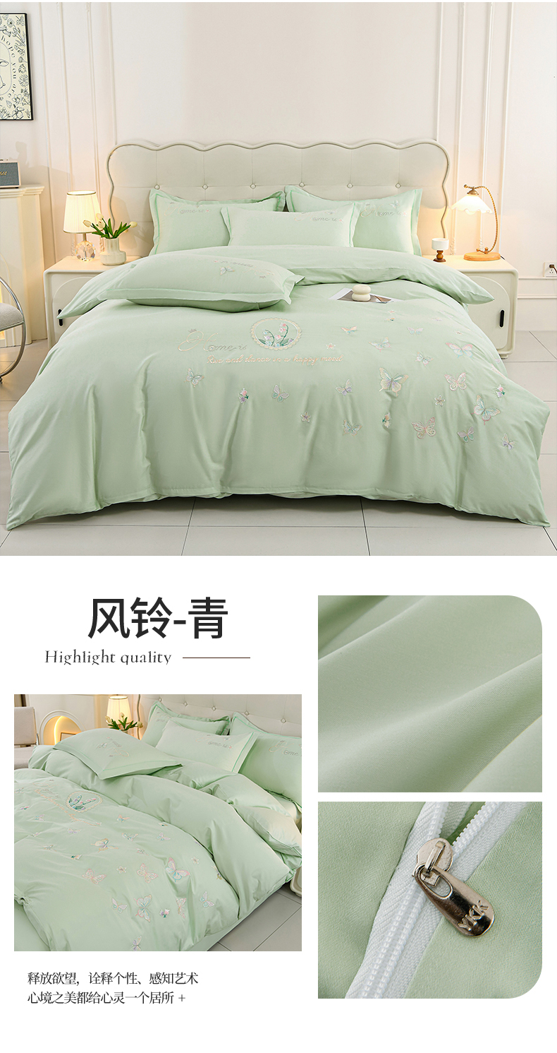 登登家纺 2025新款A类长绒棉刺绣四件套-风铃 风铃-青白