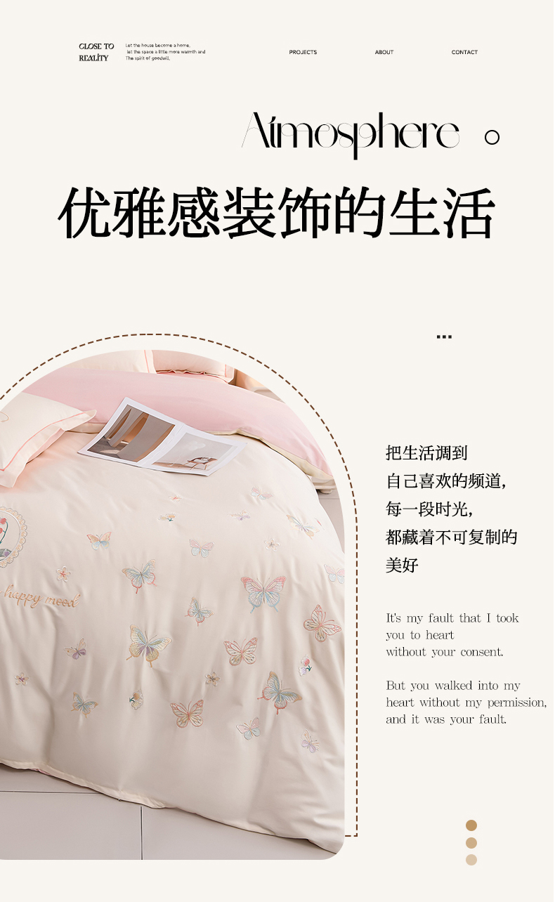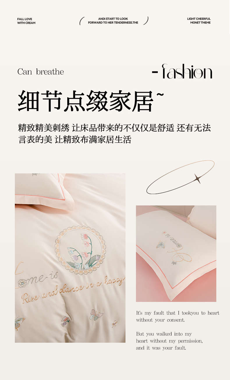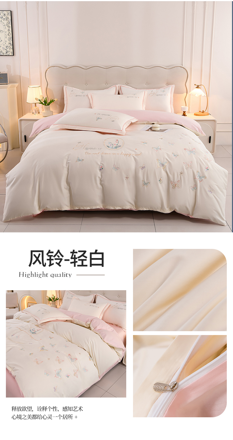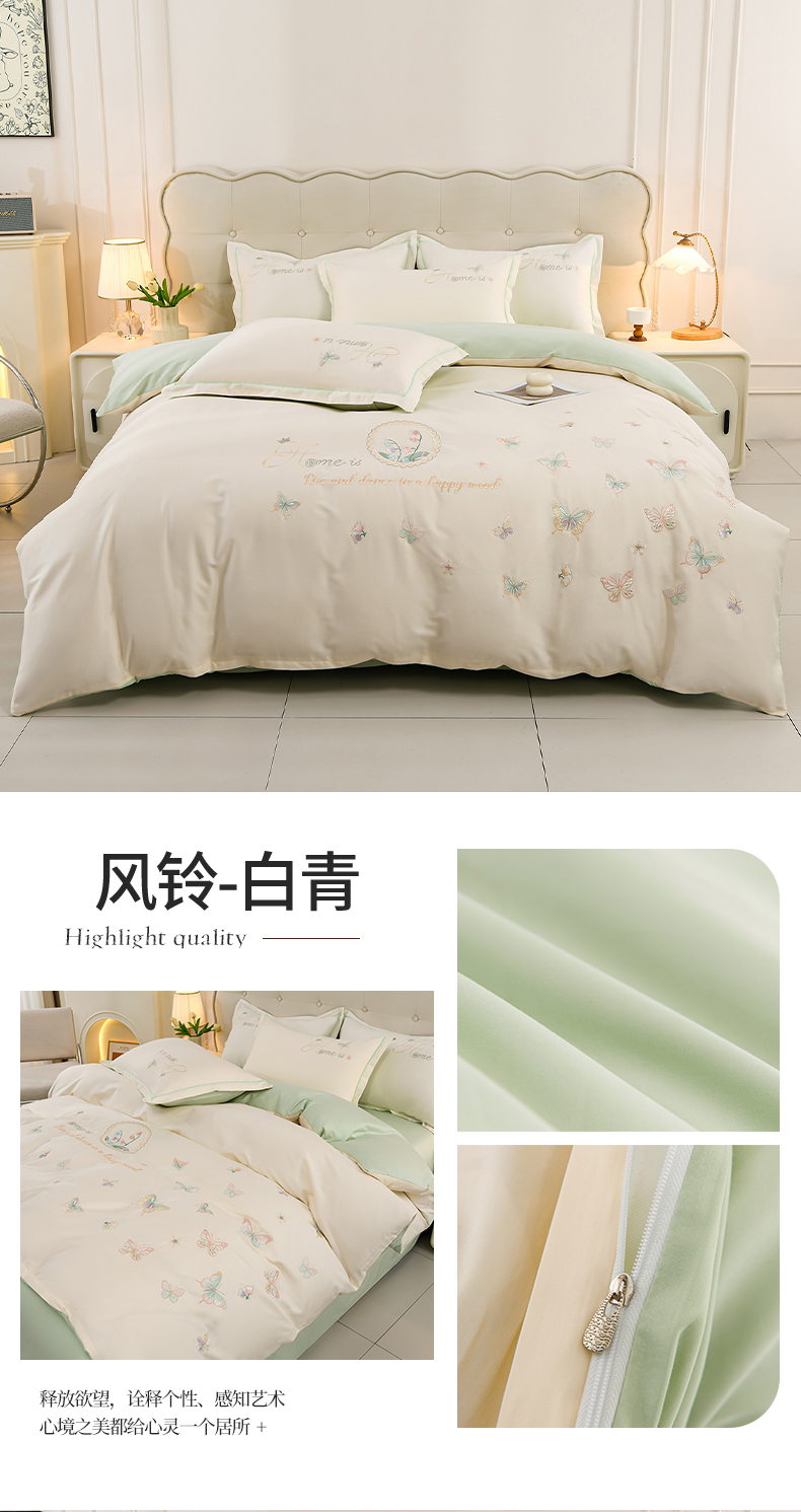 商品名称:登登家纺 2025新款A类长绒棉刺绣四件套-风铃 风铃-青白
