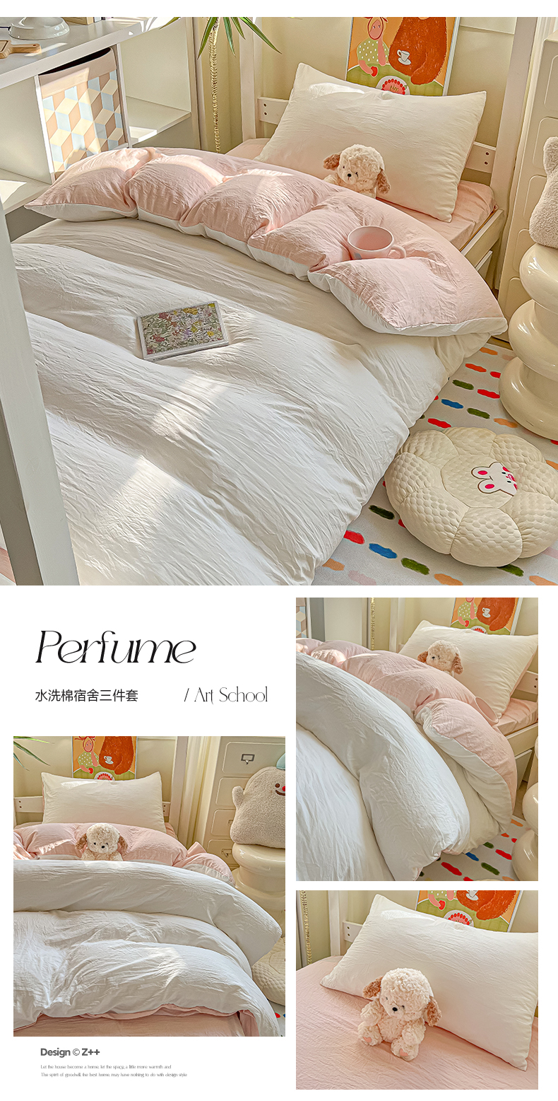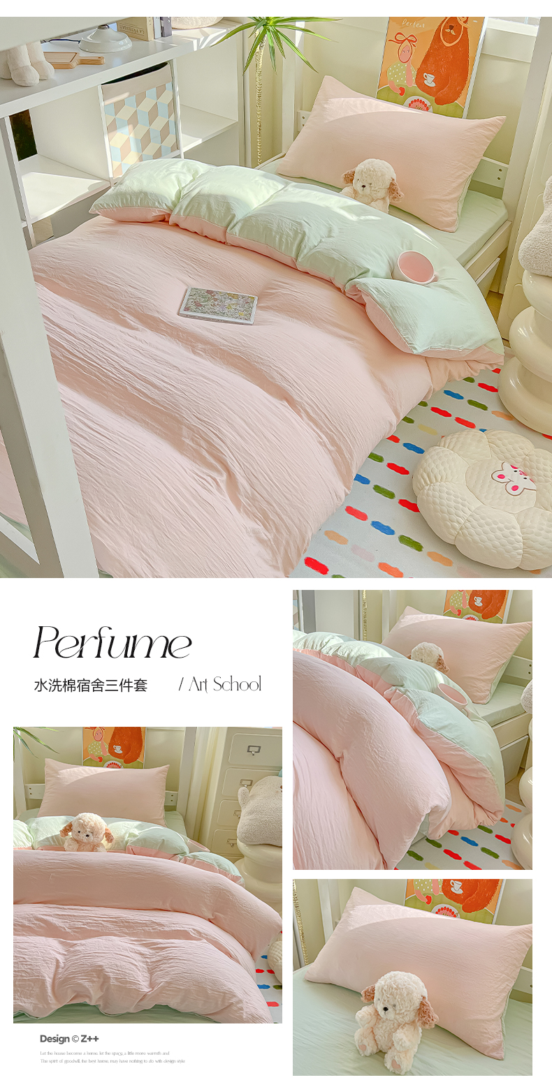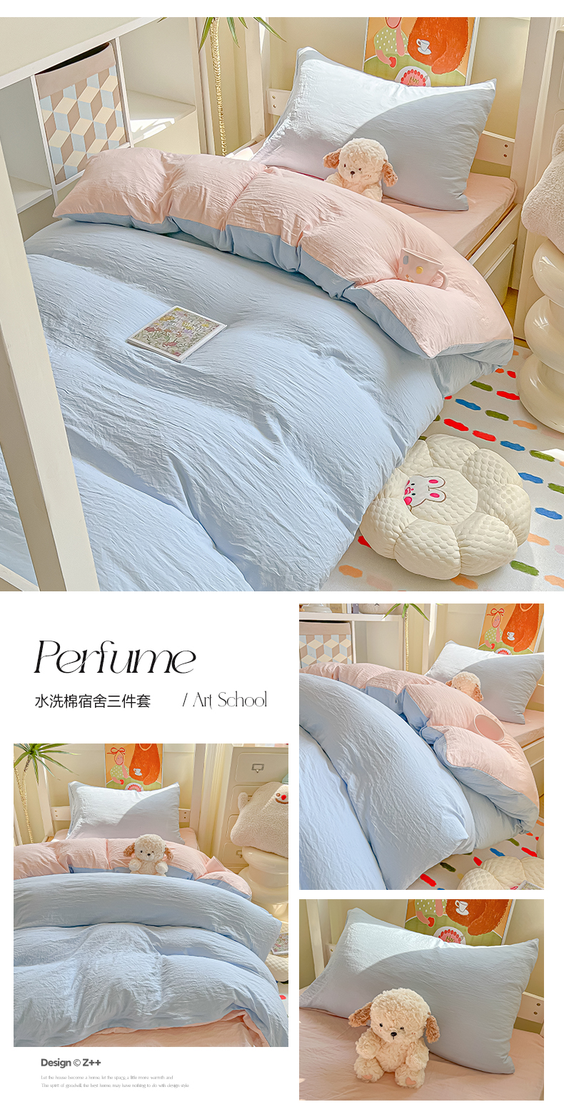 商品名称:(总)韩巢家纺 2025新款纯色水洗棉寝室上下铺三件套学生宿舍床上三件套