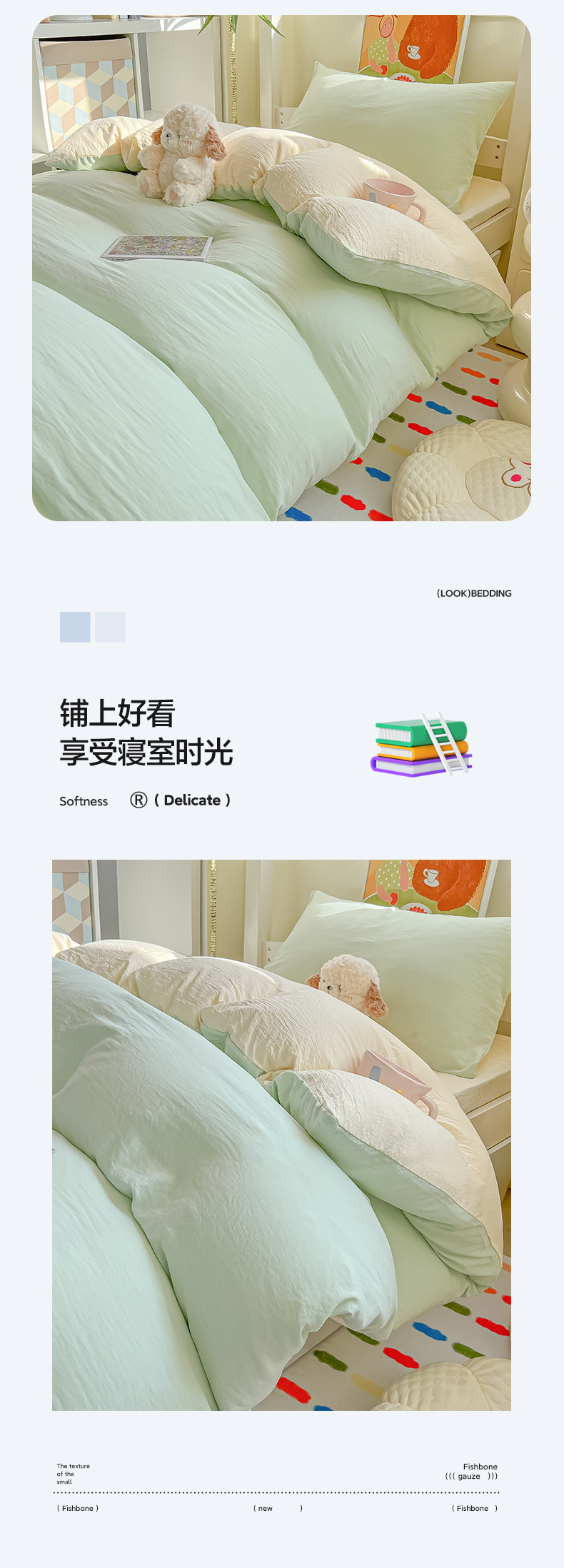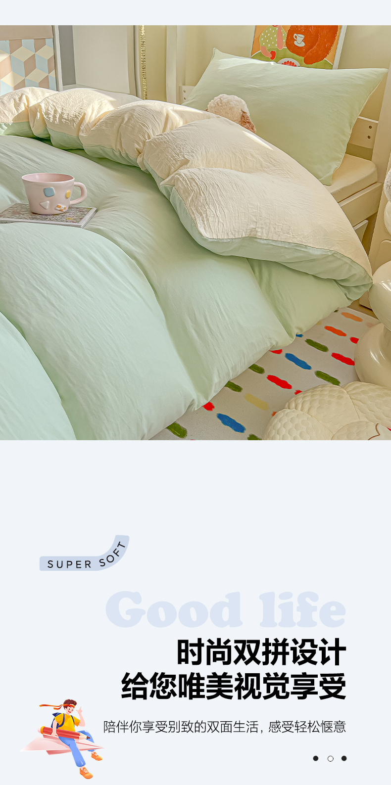 (总)韩巢家纺 2025新款纯色水洗棉寝室上下铺三件套学生宿舍床上三件套