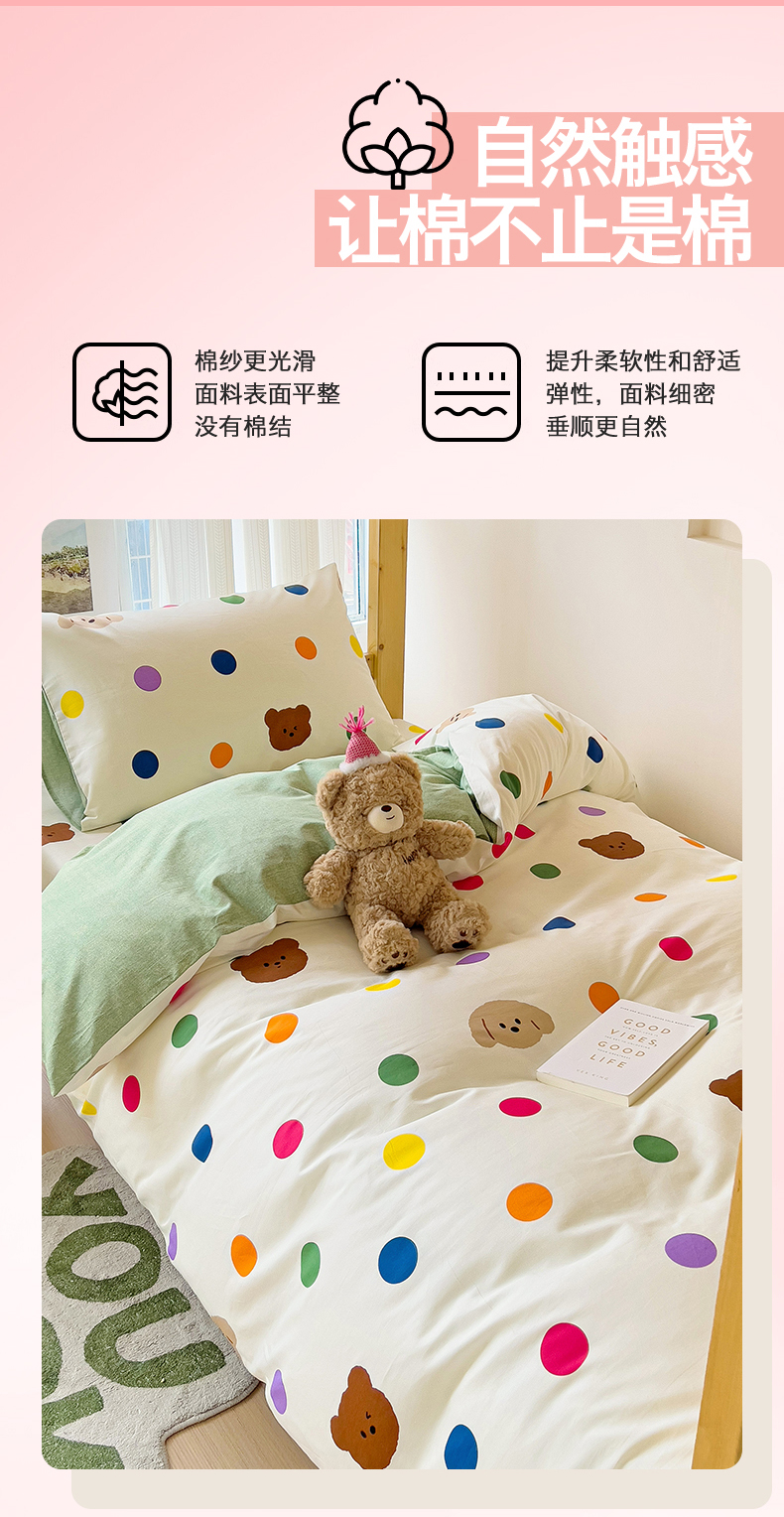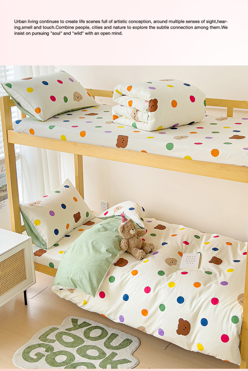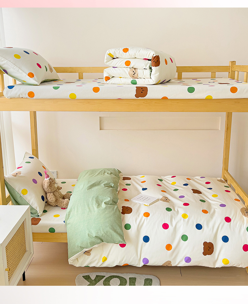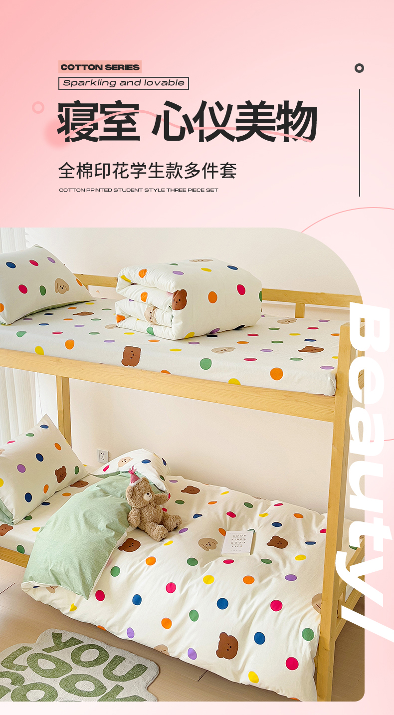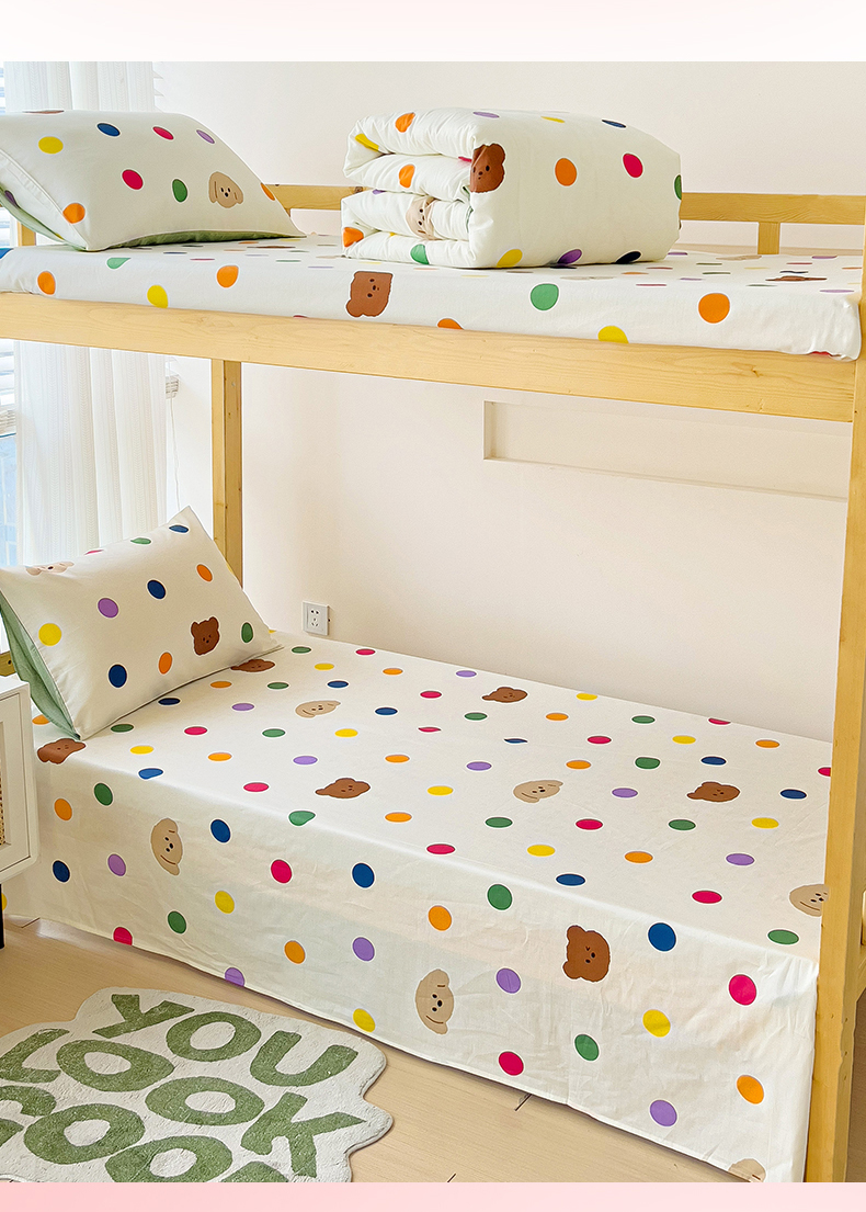当前位置: 91家纺网 > 商品网购 > 床品套件 > 四件套 > 全棉普通四件套 > 名兮2025新款全棉纯棉13372学生床多件套 波点小熊