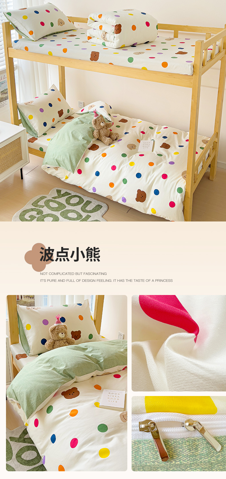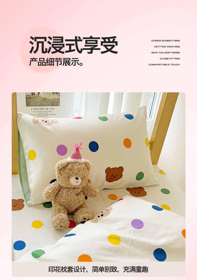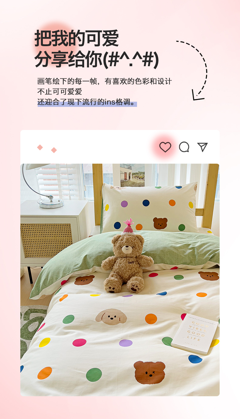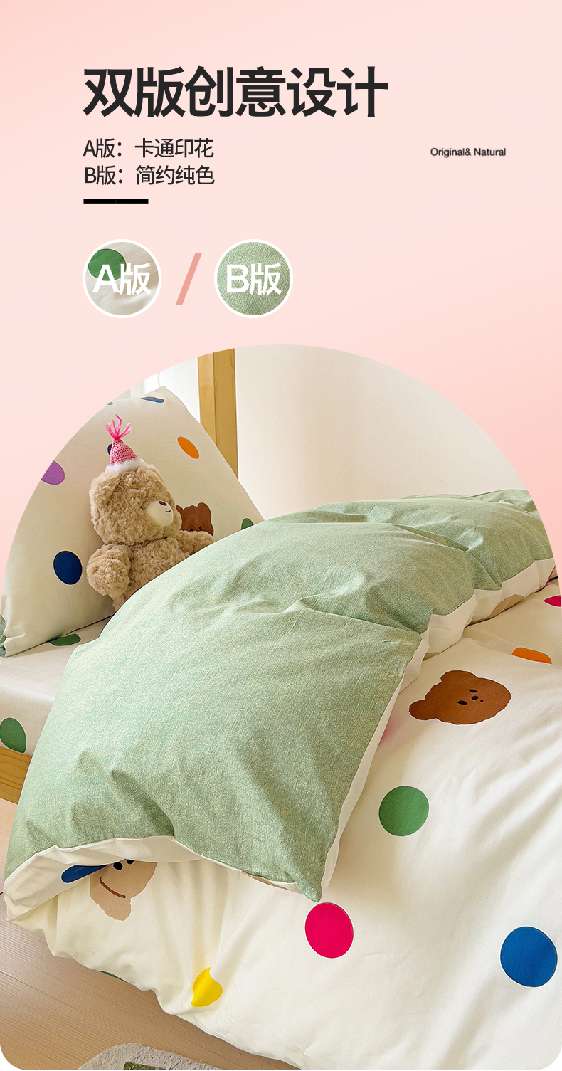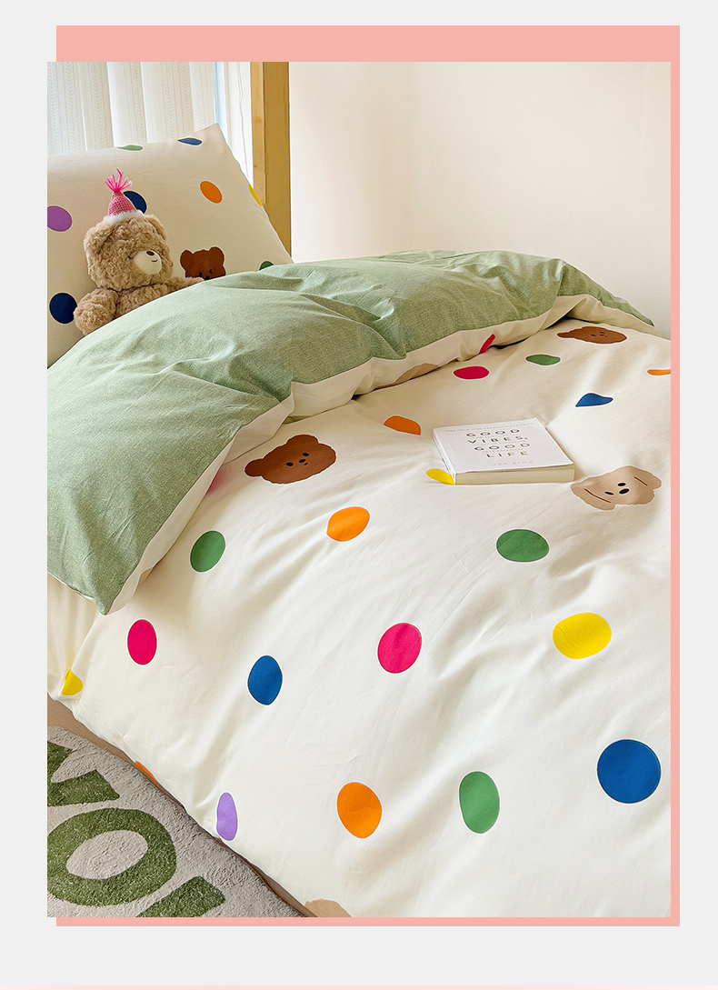当前位置: 91家纺网 > 商品网购 > 床品套件 > 四件套 > 全棉普通四件套 > 名兮2025新款全棉纯棉13372学生床多件套 波点小熊