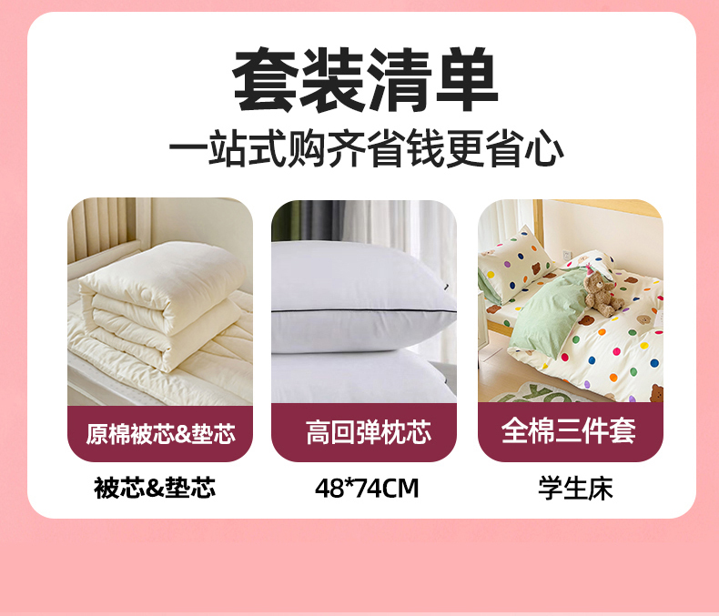 0.9m床五件套 【床单三件套+秋冬被约5斤+枕芯】 | ¥148.00 |