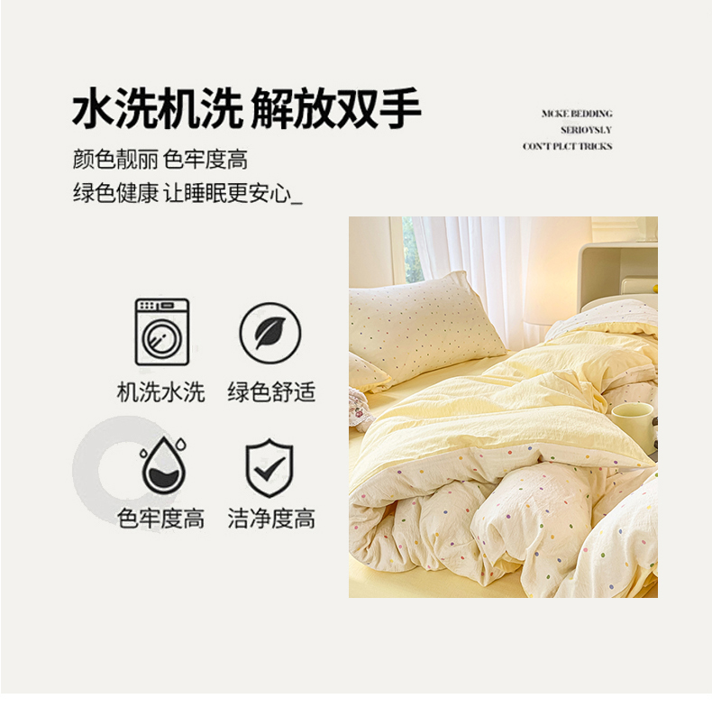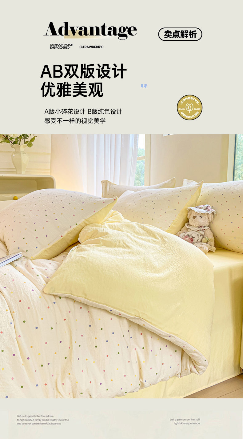 当前位置: 91家纺网 > 商品网购 > 床品套件 > 四件套 > 双层纱四件套 > 雅阁尔家纺 2025新款直播小红书ins风针织提花双层纱四件套小碎花被套床笠三件套-叠拍 彩色波波
