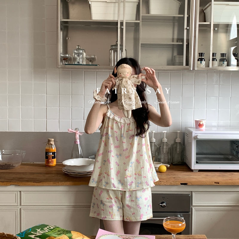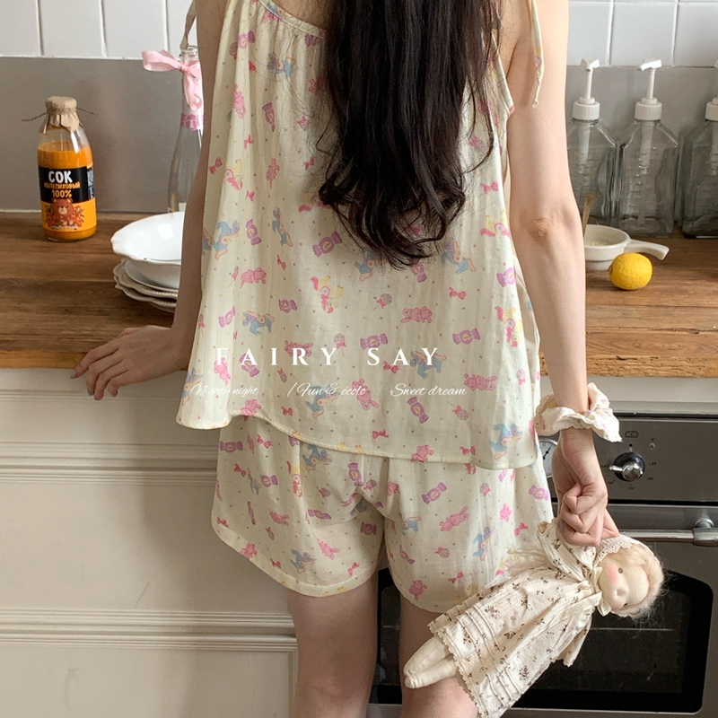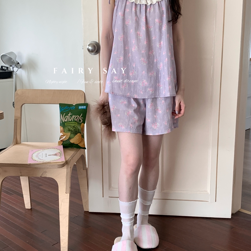 当前位置: 91家纺网 > 商品网购 > 居家日用 > 睡衣/家居服套装 > 妍景家居生活馆 2025新款纱布吊带套装 灰紫色碎花