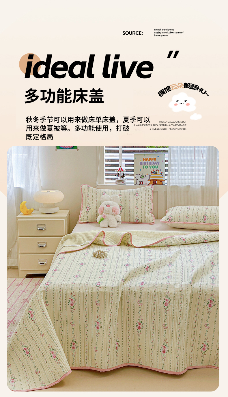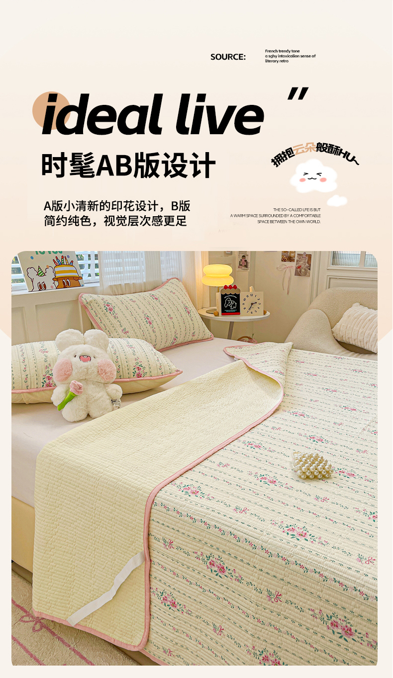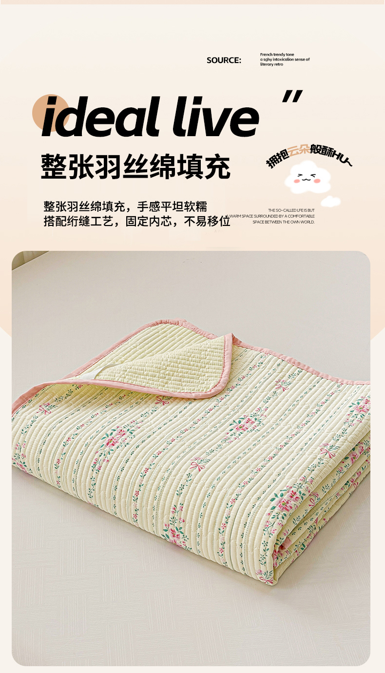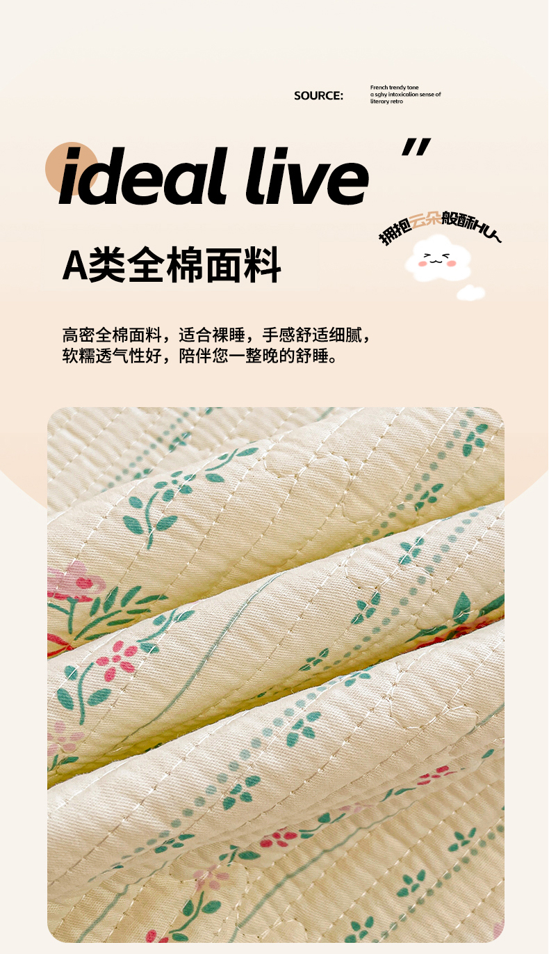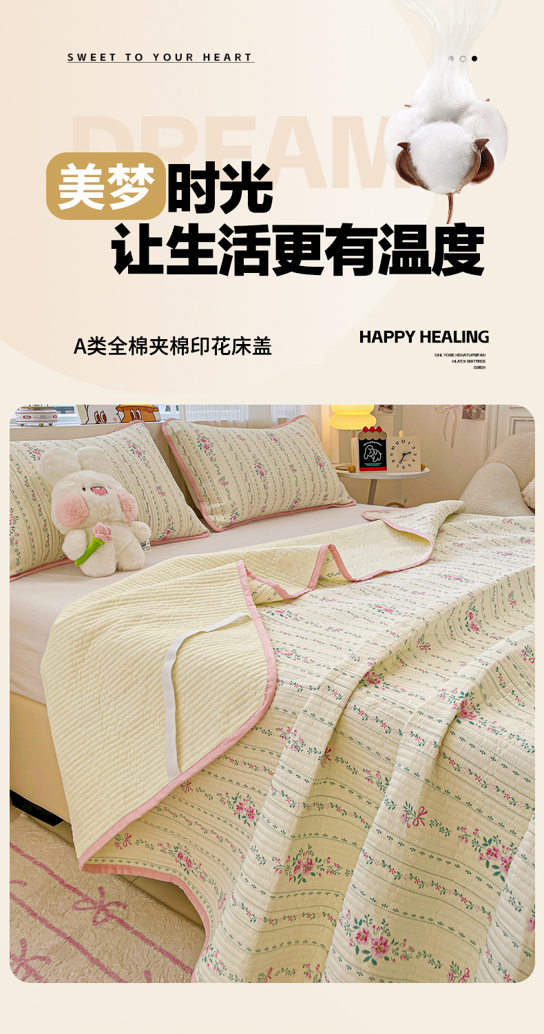 • 91家纺网 家纺一手货源 找家纺 富馨莱 2025春夏新款纯棉夹棉单床盖床盖单件薄床垫 莫奈