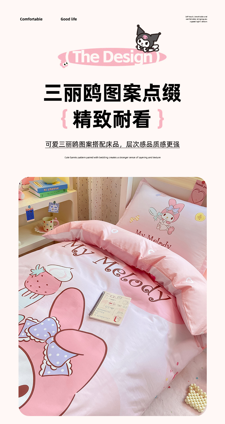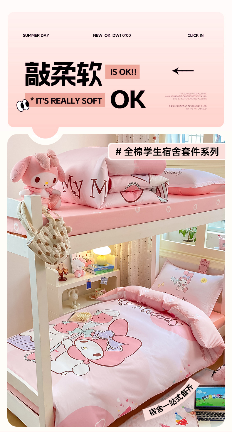 当前位置: 91家纺网 > 商品网购 > 床品套件 > 三件套 > 博雅 2025春夏新款三丽鸥全棉纯棉卡通学生宿舍三件套上下铺三件套-大版【含防伪标】 蛋糕美乐蒂